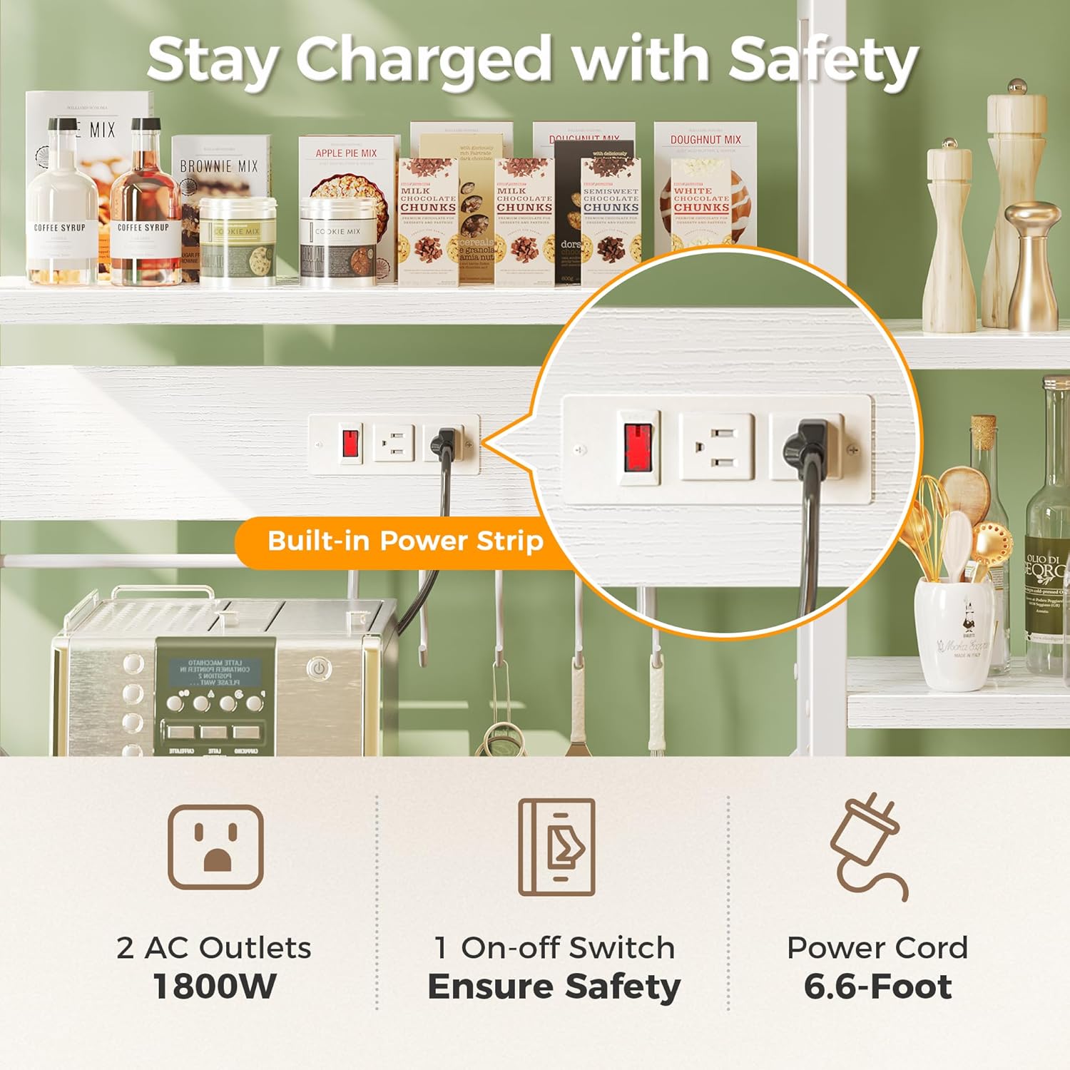 - [Where a Power Strip is Needed]: Bakers rack! Creative and considerate design, 2 AC outlets and 1 air switch, microwave, coffee or bread maker... all can be charged on it. No more tangled wires annoy you. Your tidy and well-organized kitchen will come back. Patent pending
