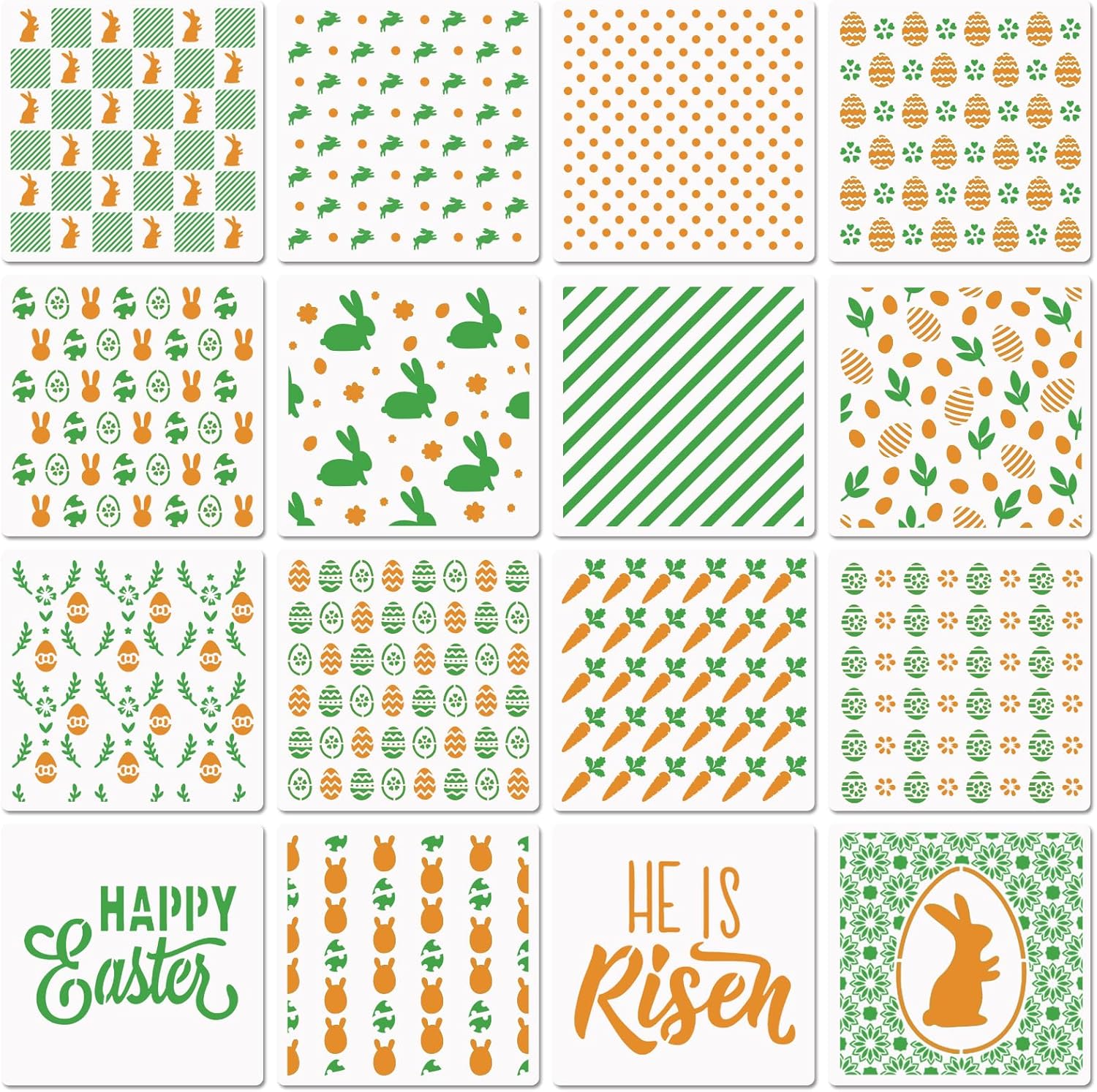 - Package Contains: one set of 16 pcs Cookie stencils. The size of the Easter stencils: 6x6 inches. Different patterns that combine with Checkered Buffalo Plaid Star Heart Dots etc., bring you many DIY ideas which will add a festive feeling to the objects you decorate.