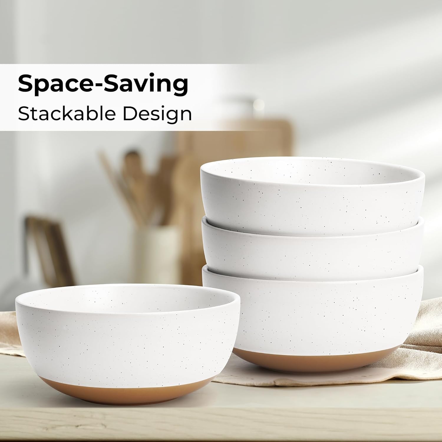 MIAMIO – Set of 4, 28 Ounce Ceramic Soup Bowls/Cereal Bowl Set for Salad, Oatmeal, Fruit, Rice – Dishwasher & Microwave Safe – Aura Collection (Creamy Cocoa, Bowls (4x))