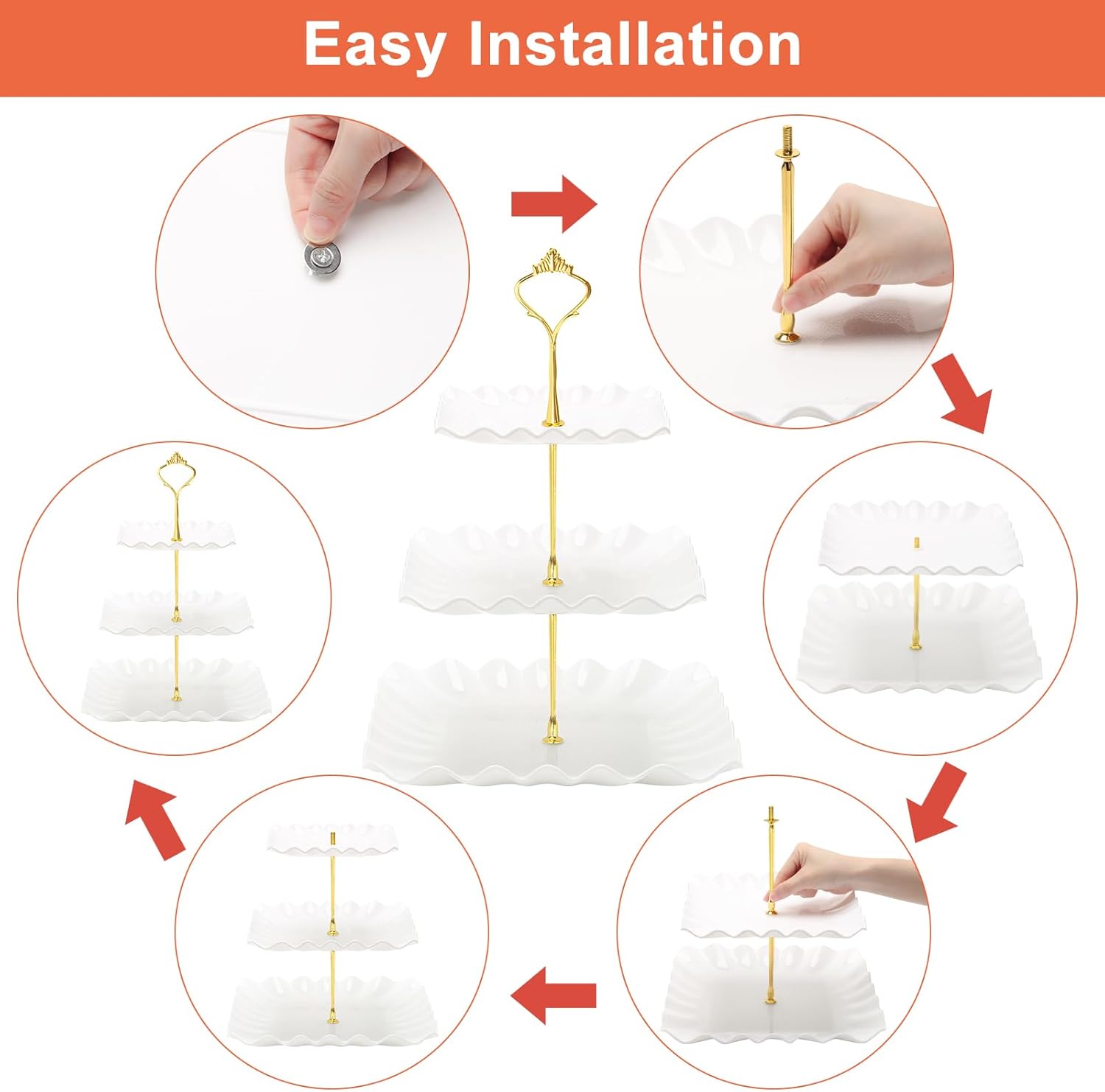 - Food Grade Material: 3 tiered serving stand are made of food safety PP material, stable and lightweight, perfect for displaying cupcakes, appetizers, brownies and other party treats.