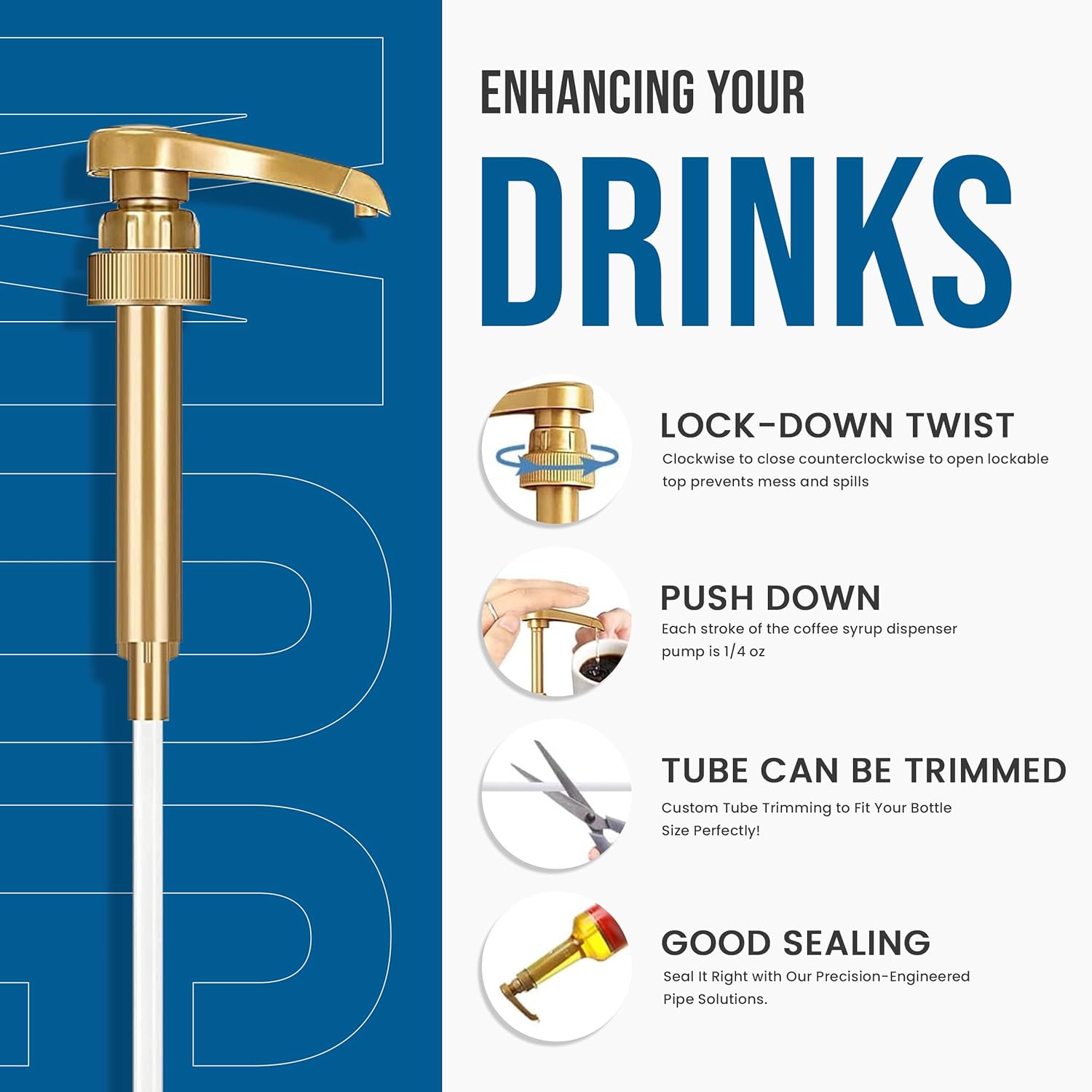 Jimoco® Syrup Pump Dispenser + Torani® Sugar Free Blue Raspberry Syrup, 25.4 oz - Coffee Syrup Pump & Flavoring Bundle
