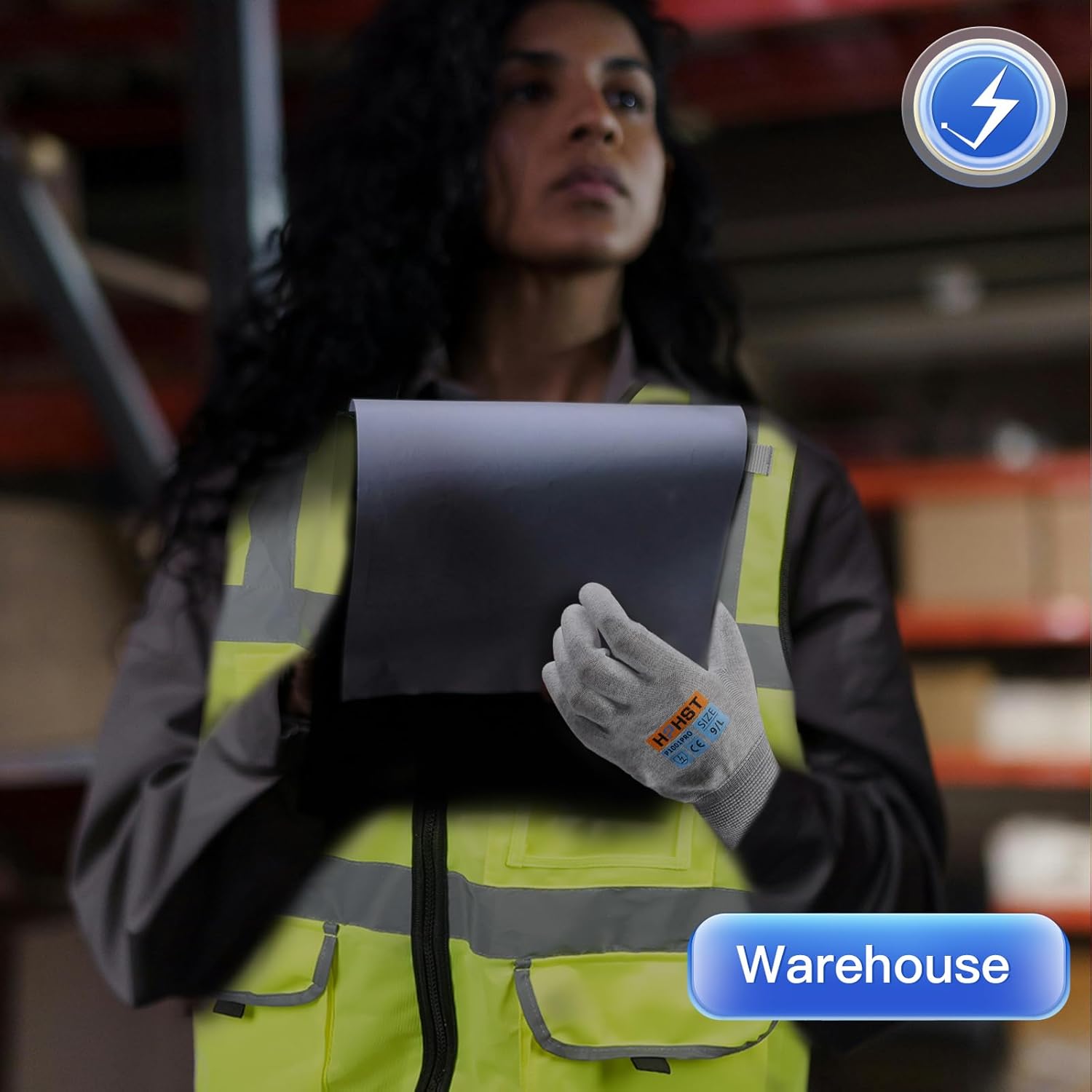 - 👏ANTI-STATIC GLOVES: Pull On closure. Operating touch screen phone or device without removing the working gloves. Dense carbon fiber provide strong anti-static ability, Finger is coated with polyurethane provides maximum grip and accuracy.