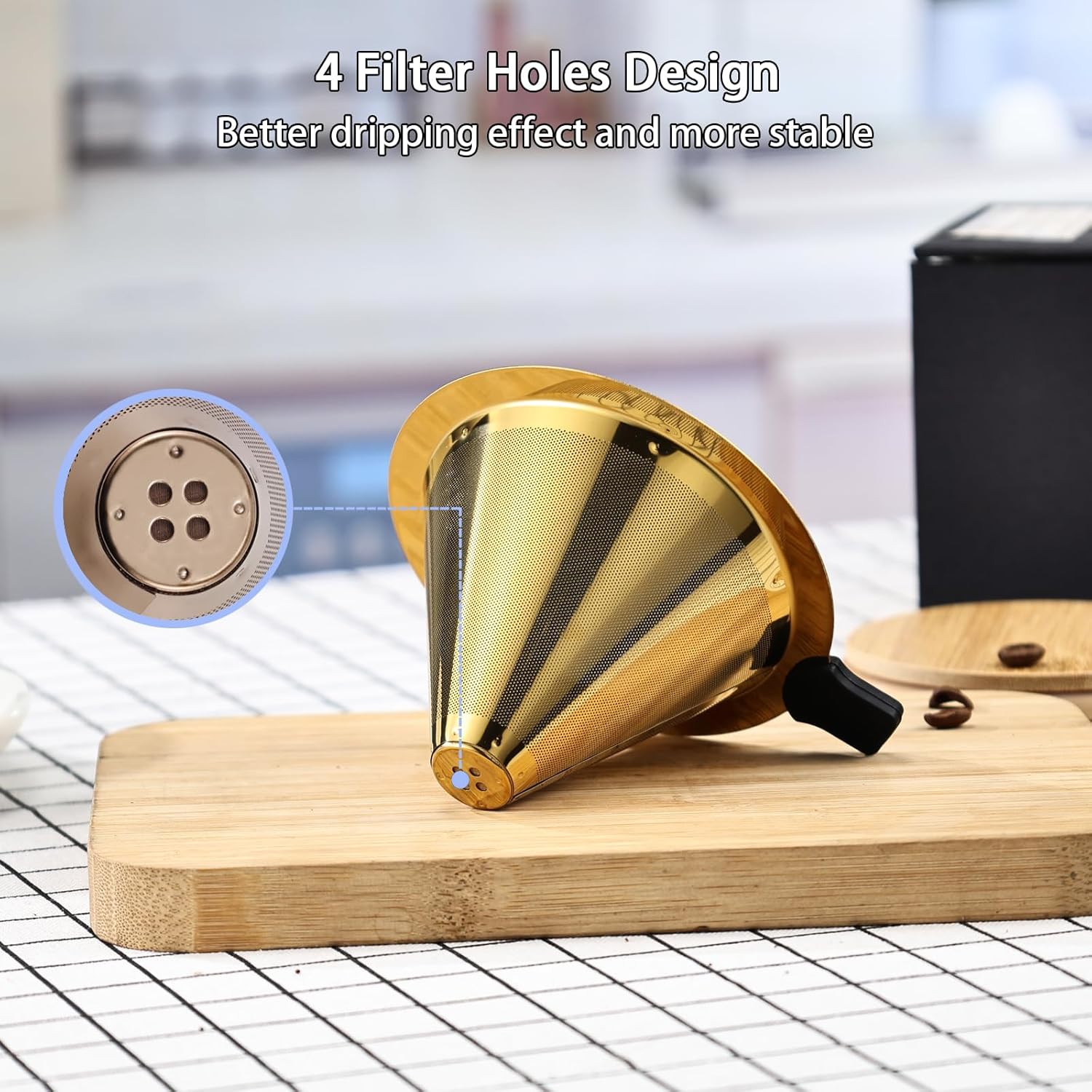 - 【Easy to Clean】Our coffee filters, just rinse with clean water or put in the dishwasher, we also recommend descaling your pour over filter every 2-3 weeks by soaking it in distilled vinegar and warm water solution.