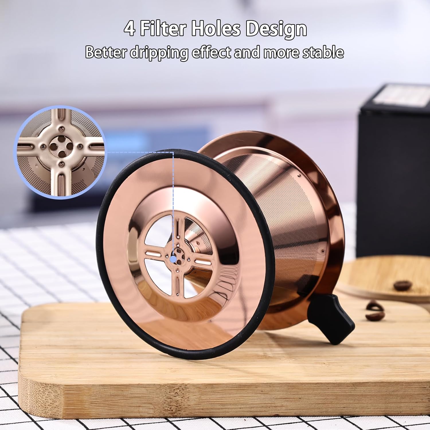 • 【Easy to Clean】Our coffee filters, just rinse with clean water or put in the dishwasher, we also recommend descaling your pour over filter every 2-3 weeks by soaking it in distilled vinegar and warm water solution.