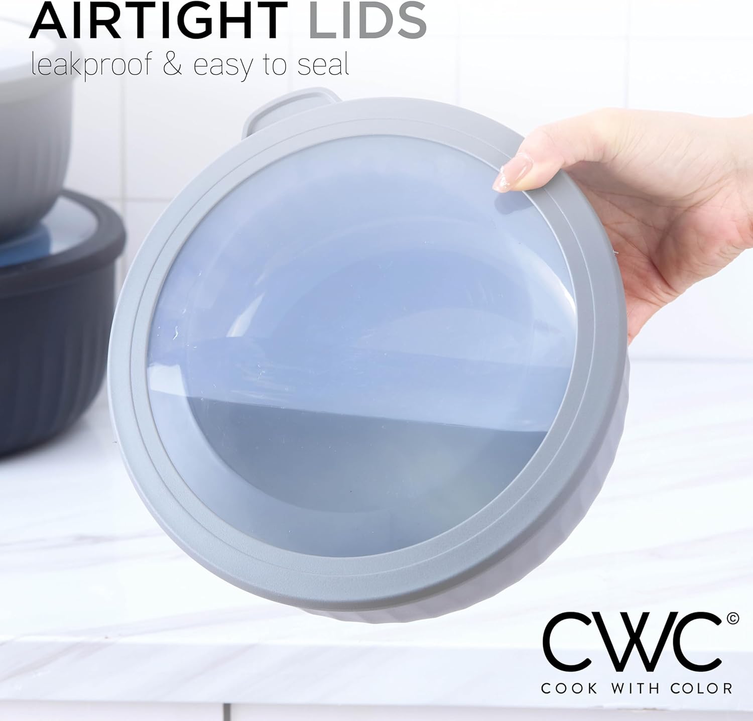 - Cook with Color 12 piece plastic mixing bowl set - non slip bowls with lids; easy to clean, sturdy mixing bowls.