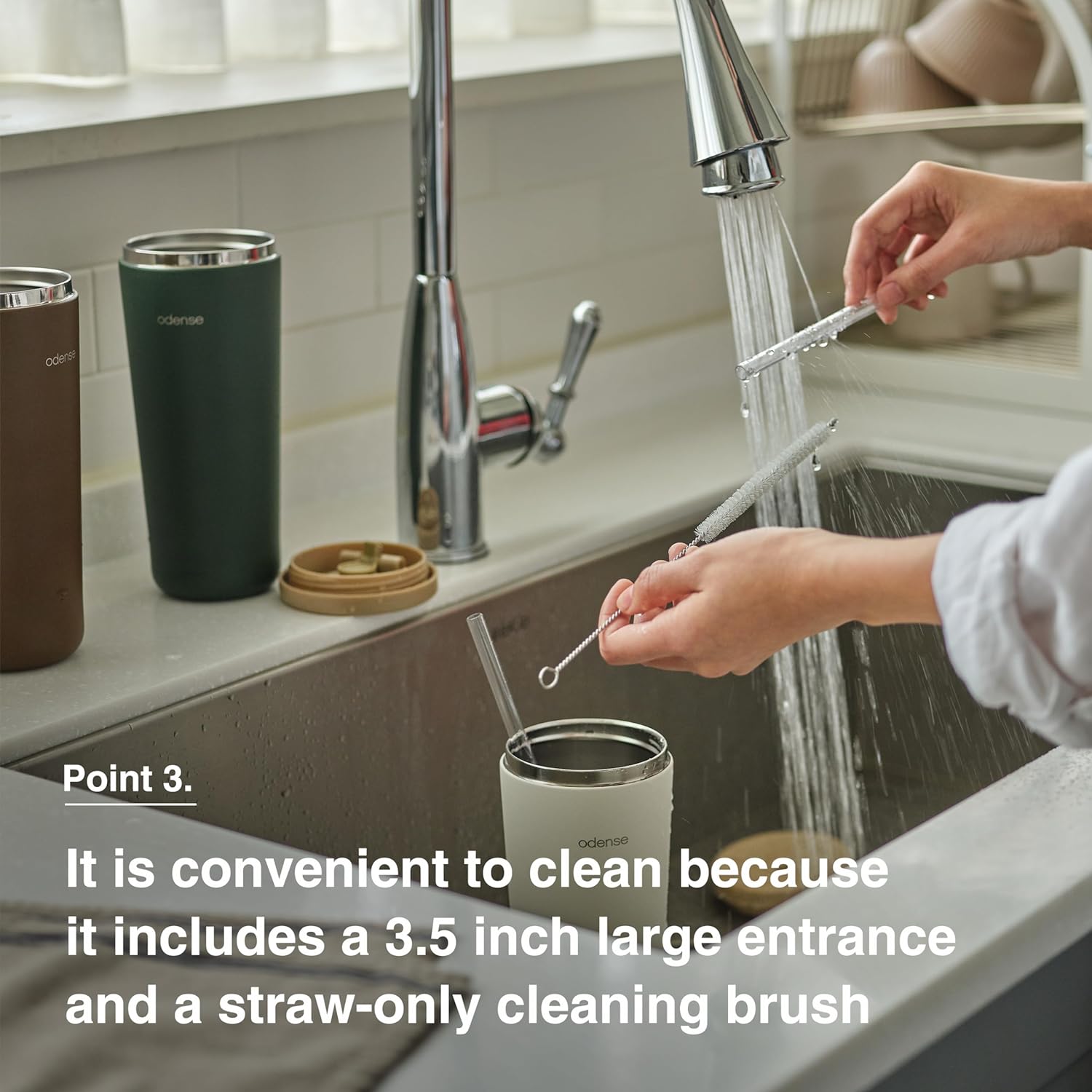 - 5. EASY TO CLEAN: The tumbler is designed for easy cleaning. It comes with a removable lid and straw. With a diameter of 3.3 inches(8.5cm) and a wide mouth, it's easy to reach all the interior parts for thorough cleaning. You can clean it by hand using a scrub brush, or simply put it in the dishwasher. The straw is made of safe Tritan material, commonly used for baby products, and a dedicated brush for cleaning is included.