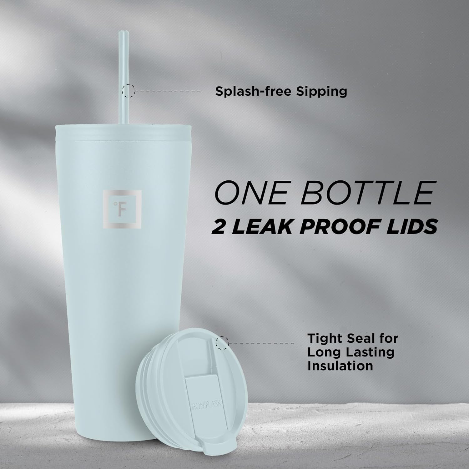 IRON °FLASK Classic Tumbler - Vacuum Insulated Stainless Steel Water Bottle, Double Walled, Drinking Cup, Insulated Travel Mug (Morning Mist, 32 oz Solid Lid)