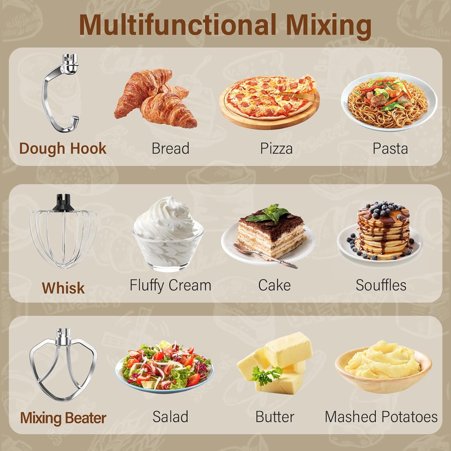- 24/7 ONLINE SUPPORT----Honinst electric kitchen mixer is a great gift for family or friends. We provide 24/7 online service, please feel free to contact us if you have any problems while using it.