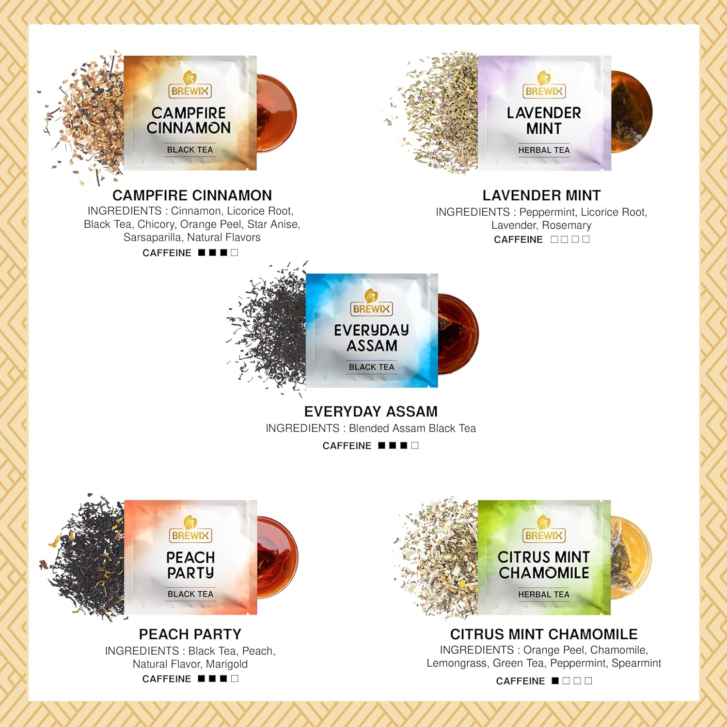 - INDIVIDUALLY WRAPPED - Each Brewix sachet comes individually wrapped in pyramid tea bag sachets ready to be steeped into a perfect cup of tea. Wrapping each individual sachet allows us to ensure each bag is fresh, full of flavor, and ready to be enjoyed. Take some on the road with you !