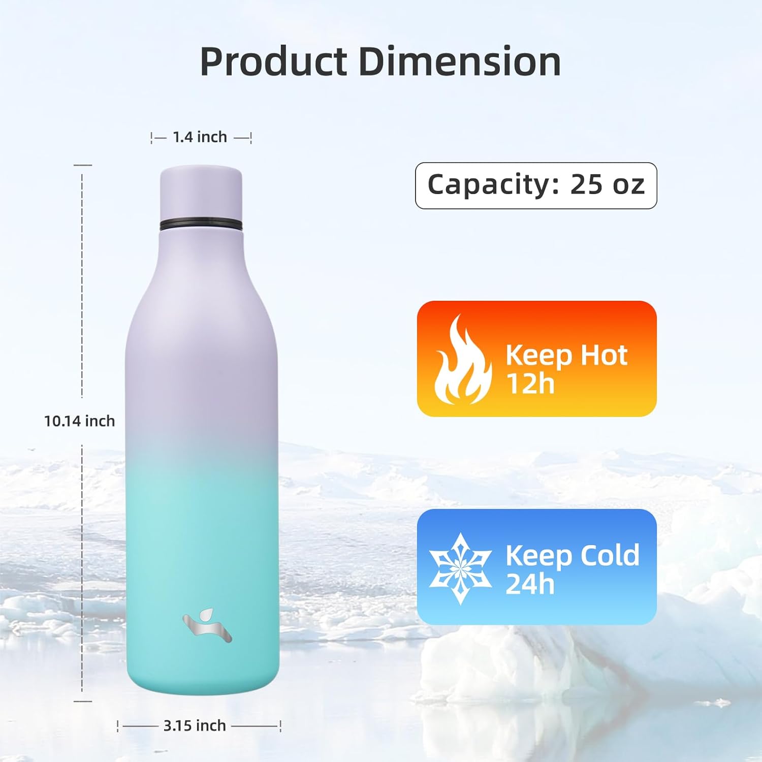 - The 25 oz water bottle comes in a variety of colors to choose from, including solid colors, ombre colors and shining colors. Choose the color you like best. Stay refreshed and energized with Konokyo insulate water bottle