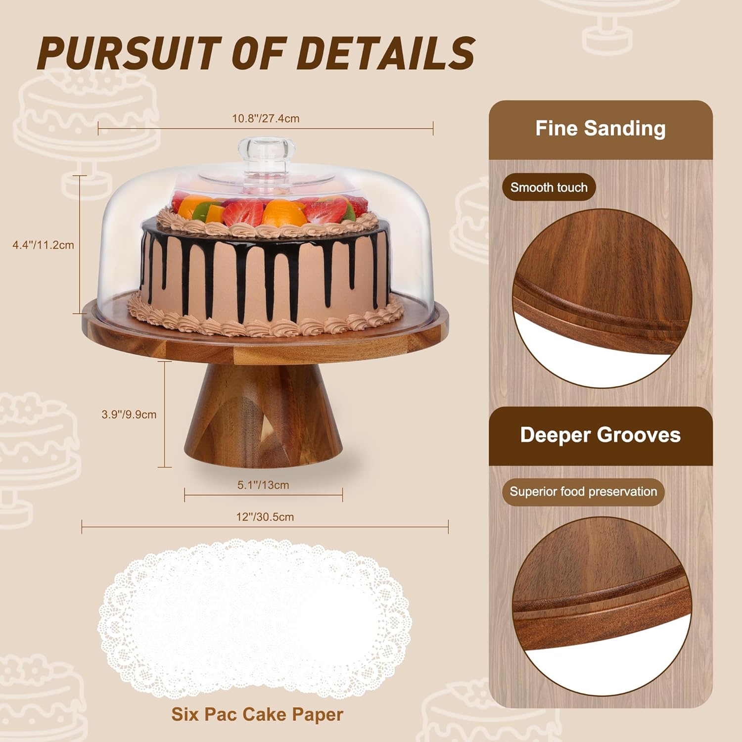 - 【Best Gift】The Acacia cake stand with lid versatility makes it the ideal gift for any baking enthusiast or hostess. Its spacious surface accommodates cakes, pastries, and even hors d'oeuvres, making it a practical addition to any home. Whether it's a birthday, anniversary, or housewarming party, our Acacia cake stand makes a memorable and thoughtful gift. Its beautiful wood grain and smooth finish will captivate any recipient, adding a touch of charm to their home.