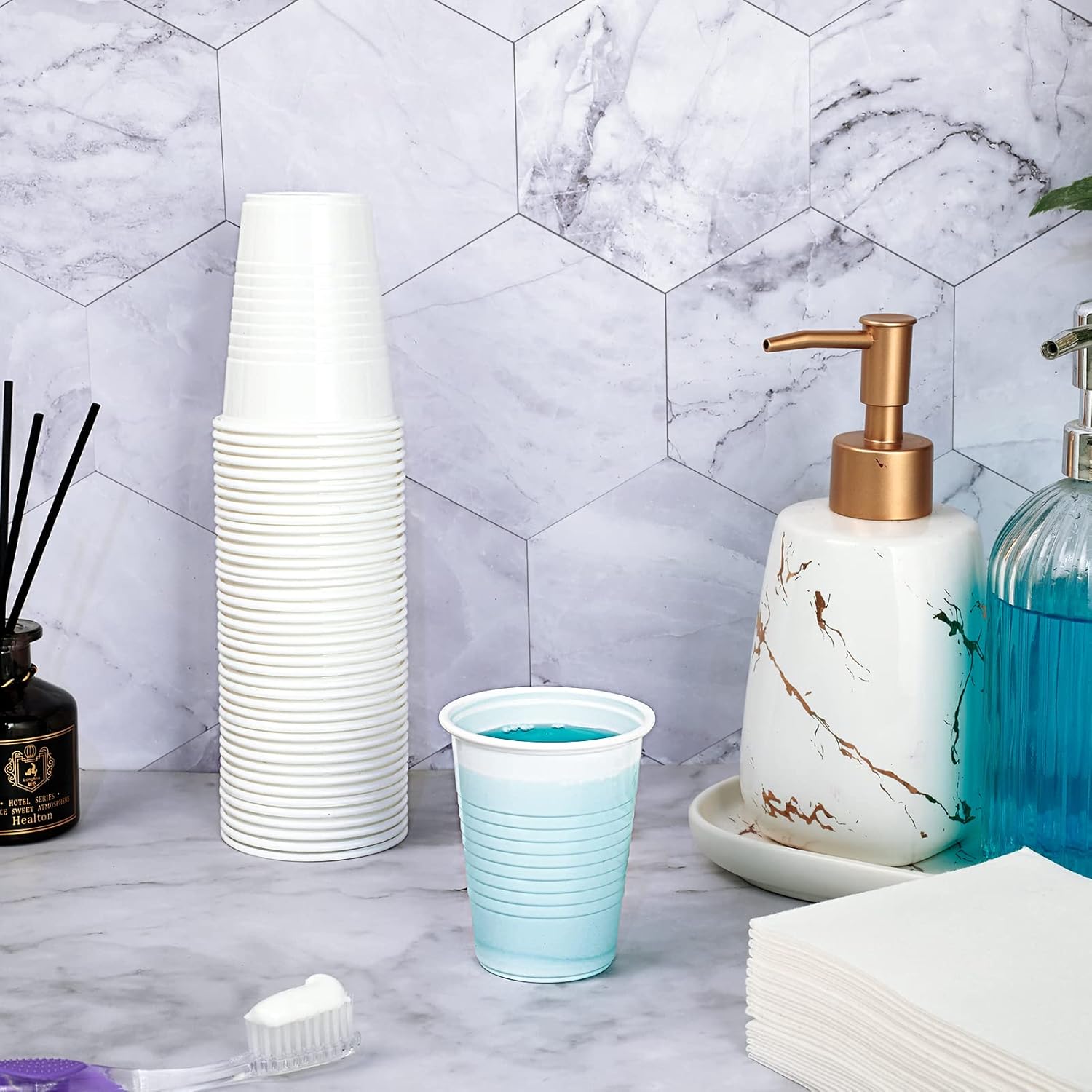 - High Quality : 5 oz white plastic cups have sturdy walls, and the horizontal textured walls of the cups provide a non-slip grip, great choice for bathroom cups of the whole family