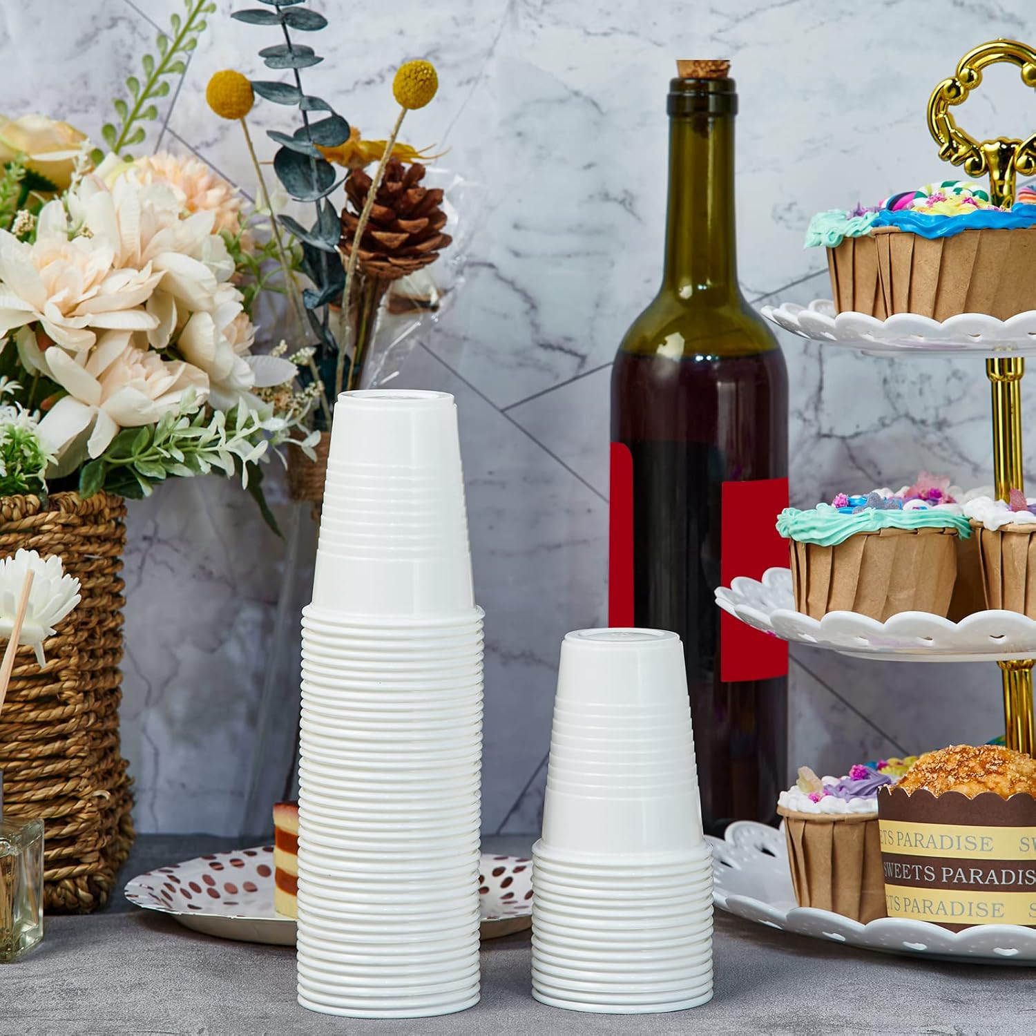 - Hassle-free Use : Disposable white plastic cups, and the elegant white appearance is also suitable for home, events, or business use. Throw them away directly after use without any cleaning work, which can save a lot of time