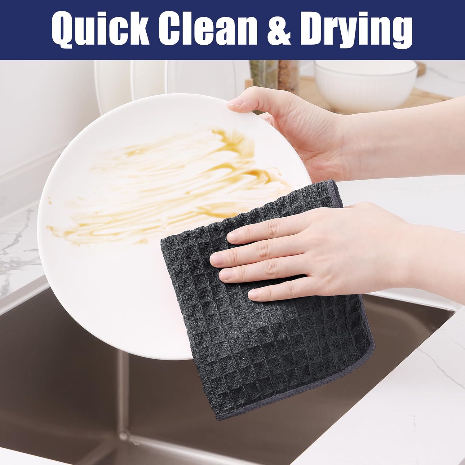 - High Absorbent & Fast Dry: The dish towels with double-sided waffle design, high absorbency, can quickly wipe stains from the surface of the items and fast dry