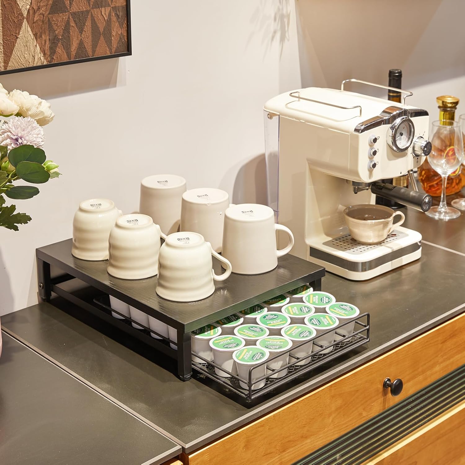 - 【COFFEE PODS STORAGE】: This coffee pod drawer holder can store about 30-40 coffee pods at a time. Having the slim home kitchen counter organizer is a good choice for coffee drinkers.