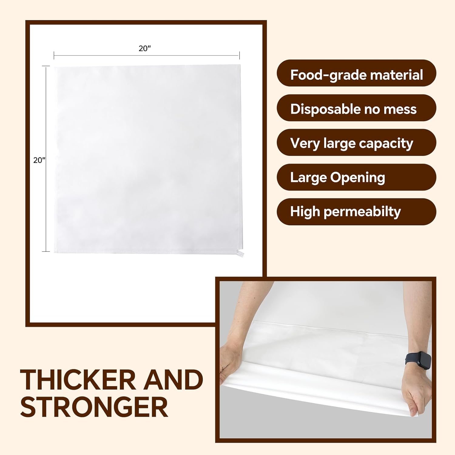 50 Pcs Commercial Cold Brew Coffee Filters,20" x 20" Commercial Cold Brew Bags For Commercial Model Cold Brew Coffee Makers and 5-Gallon Commercial Systems,with Drawstring,Brew Up To 5 LBS Coffee