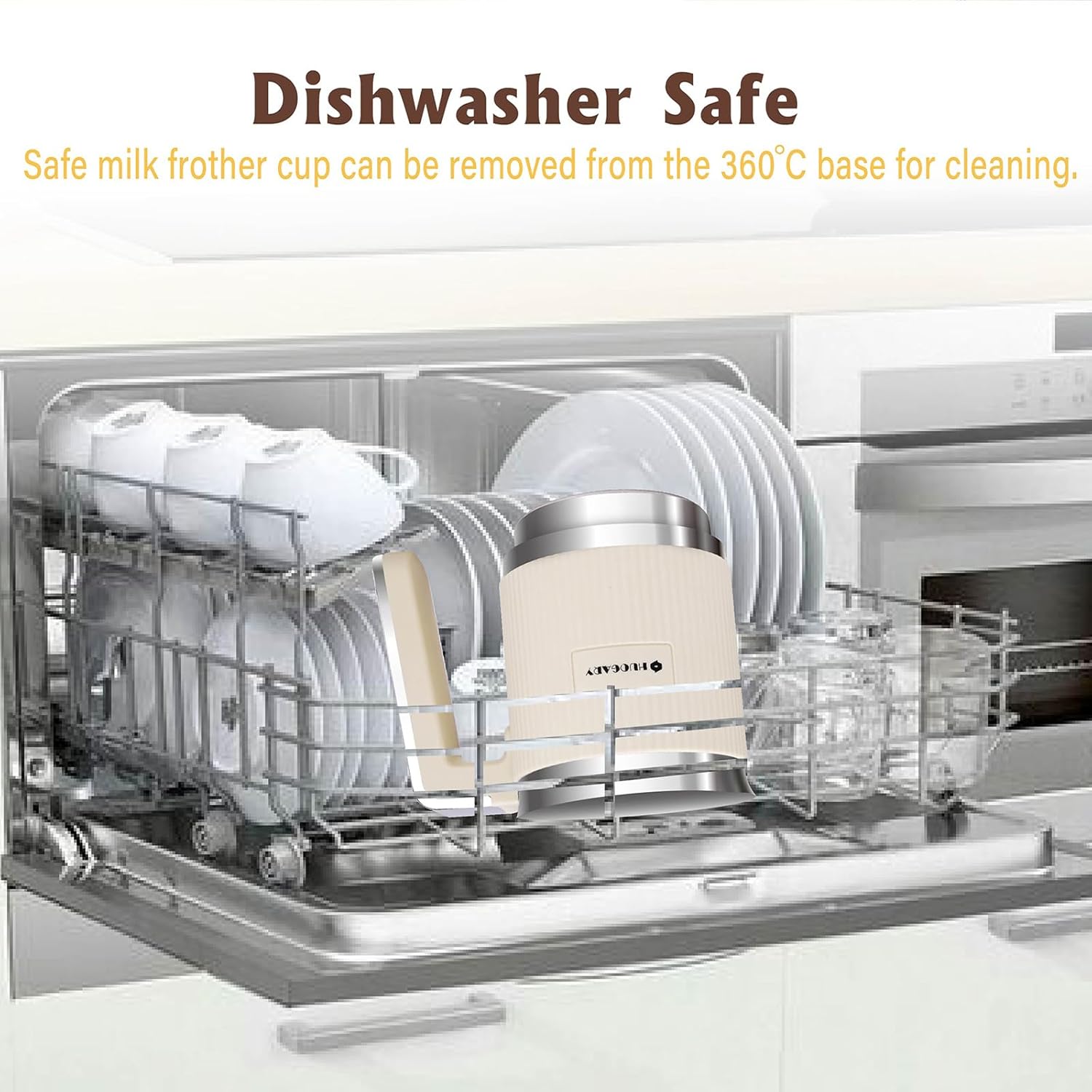 Huogary 5-in-1 Detachable Milk Frother Electric Milk Frother and Steamer Automatic Milk Foamer Frother Hot and Cold Foam Hot Chocolate Maker with Dishwasher Safe (Beige)