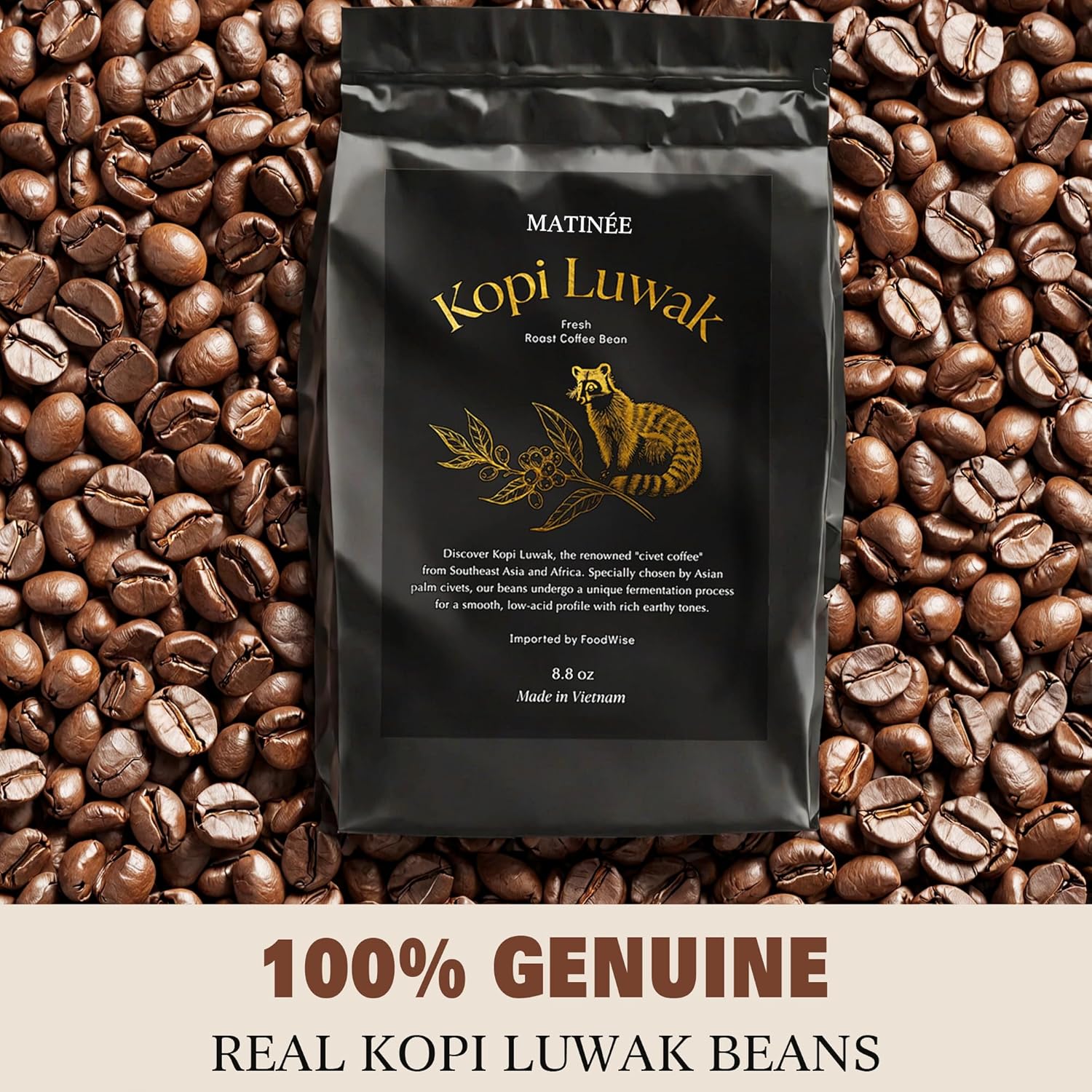 MATINÉE Wild Kopi Luwak Coffee Beans, Medium Roast, Whole Bean Beans, Civet Coffee - Sustainably Sourced From Vietnam, 8.8oz / 250 Grams