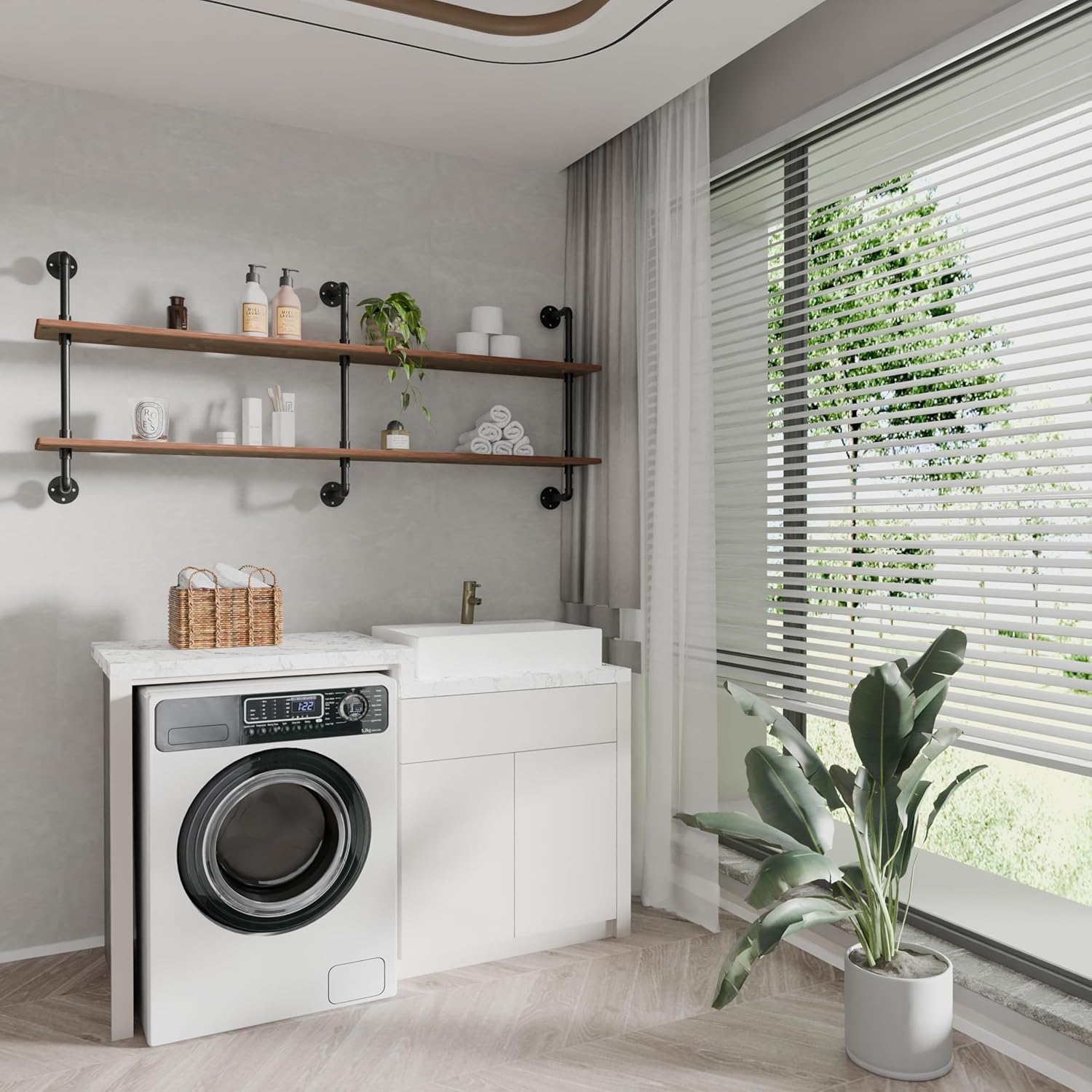 - 【Size】 Pipe shelves Wood: Length70"x Depth9.84",Pipe shelves height :28.74’