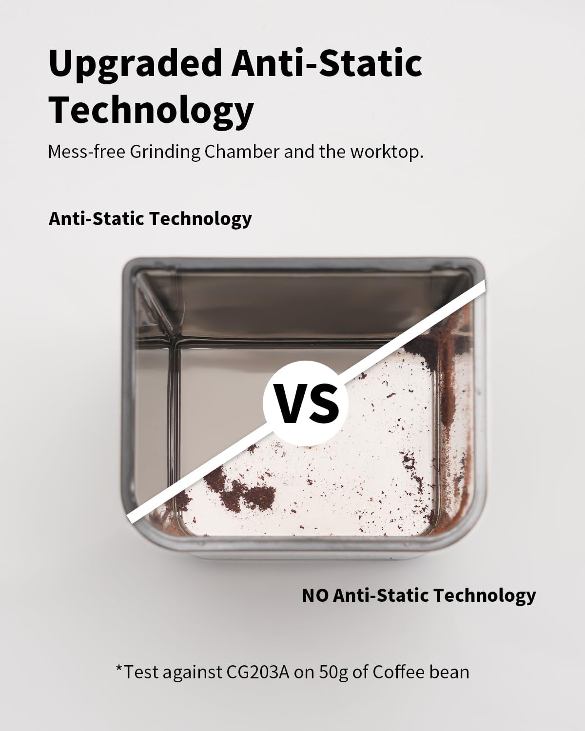 - [Upgraded Anti-static Technology]-Prevents coffee grounds from flying around and staining the work surface.