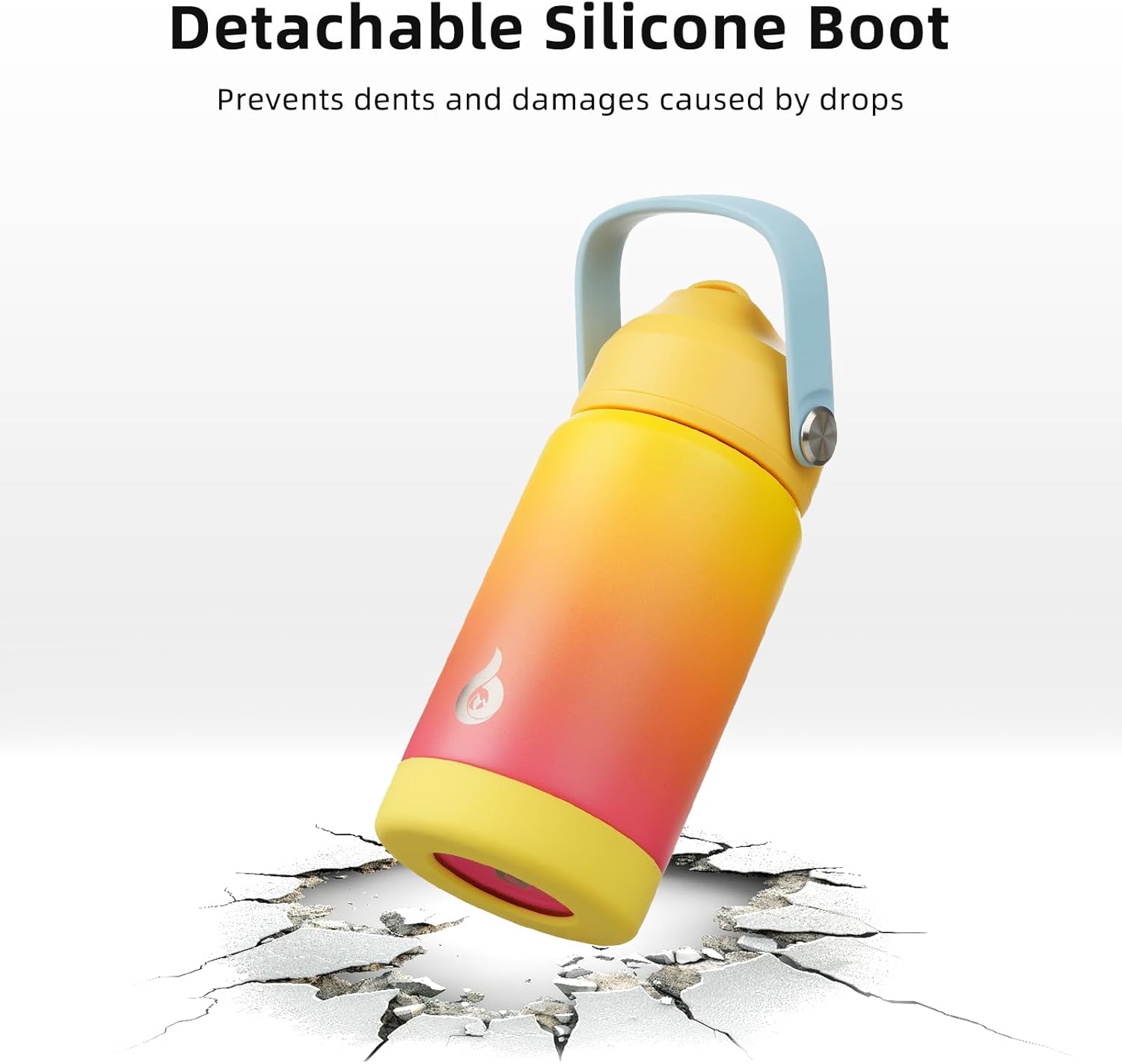 BJPKPK Insulated Water Bottle with Straw Lid, 12oz Thermos Water Bottles with Soft Nozzle, Flex Handle & Non-slip Boot, BPA Free Leak Proof Stainless Steel Metal Thermos, Tumblers, Cups,Rainbow