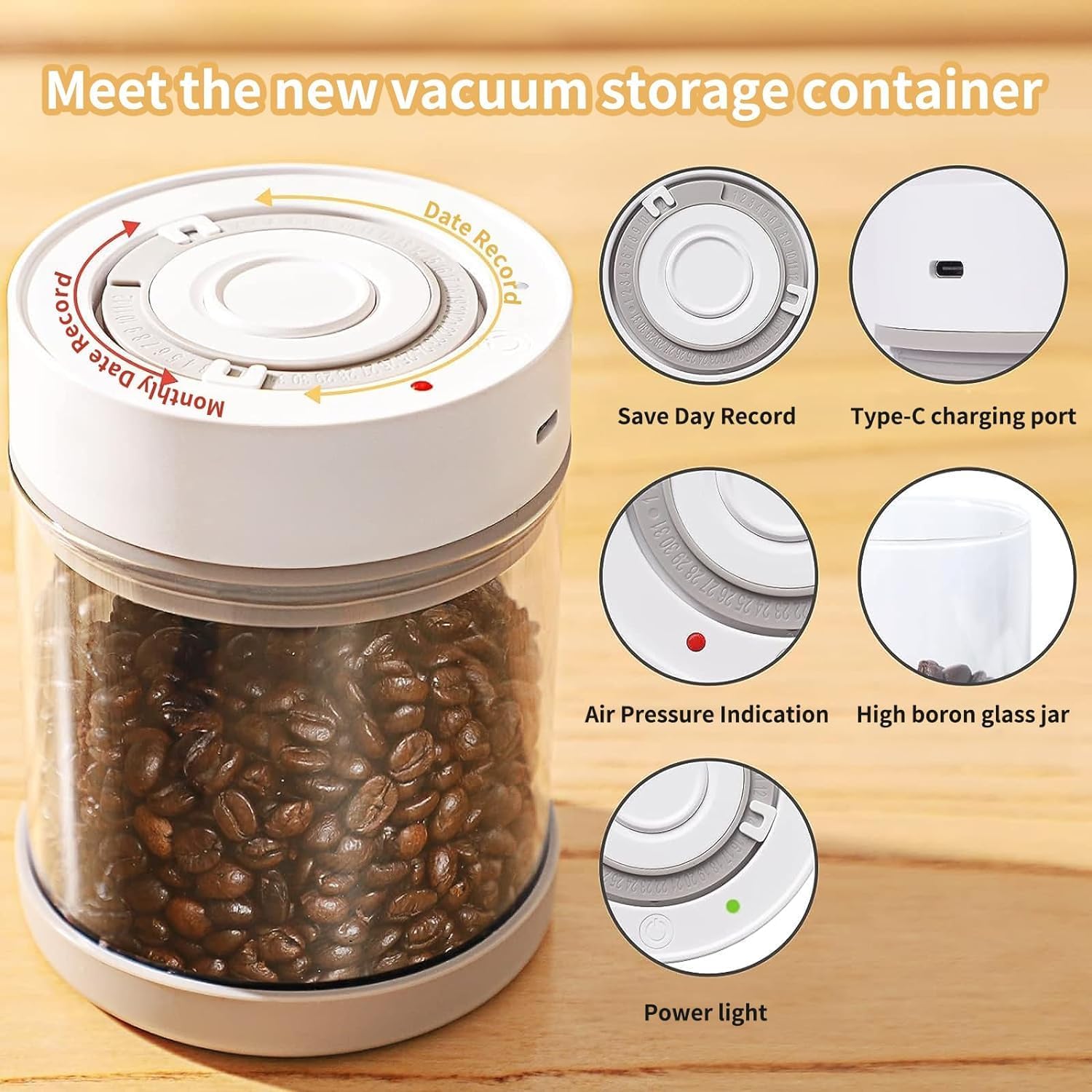 - 【SMART & LONG-LASTING FRESHNESS】This electric vacuum container continuously maintains low pressure & less oxygen in the jar, keeping food 5x longer dryness & freshness than traditional vacuum sealed containers / non-vacuum storage methods, which makes planning meals become an joy. When it is used as a coffee bean storage tank, brewing a cup of authentic coffee will no longer be a problem.