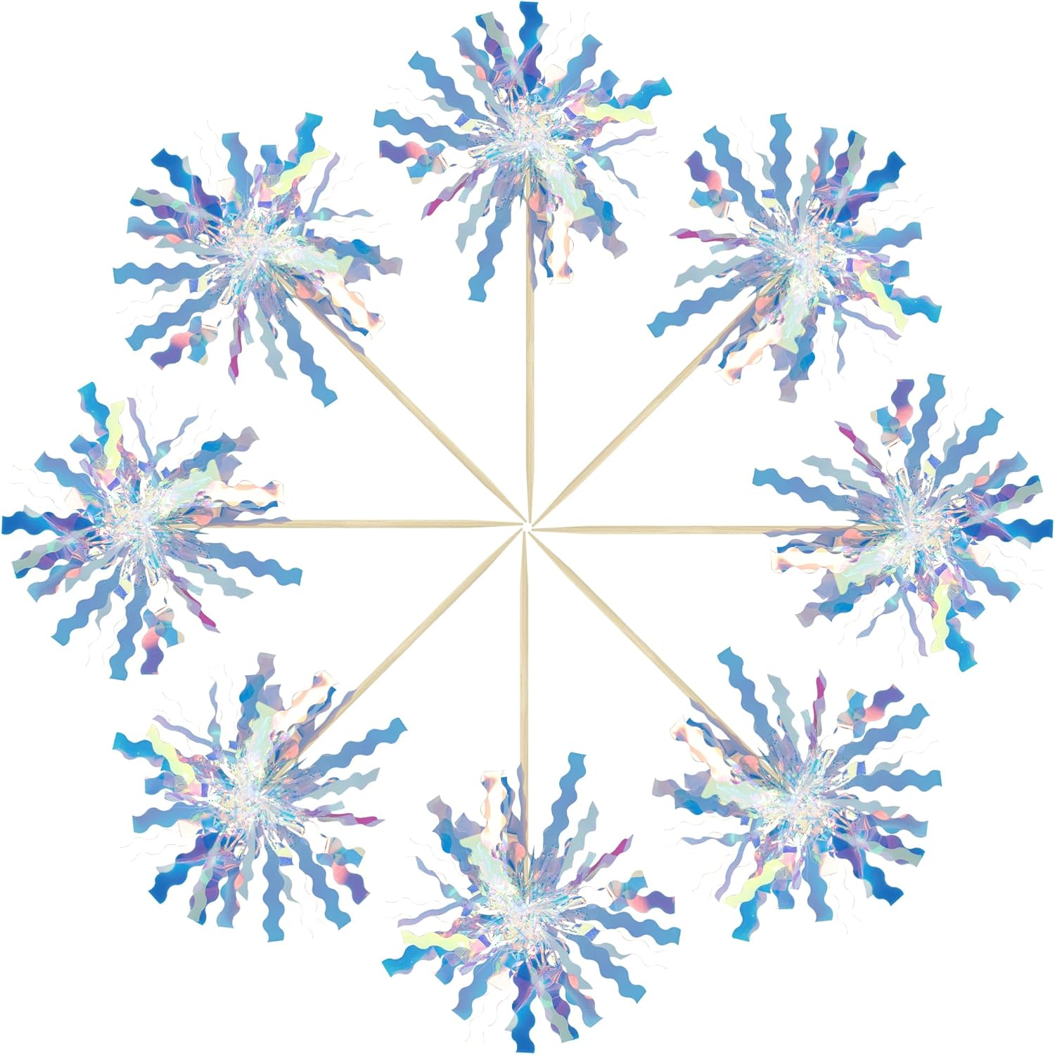 Gyufise 30Pcs Foil Firework Cupcake Toppers Happy Birthday Cake Toppers Tinsel Flower Drink Stirrers Cocktail Food Fruit Toothpicks for Valentine's Day Party Birthday Wedding Supplies Laser Silver