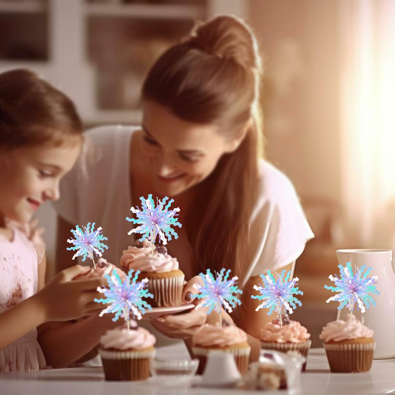 Gyufise 20Pcs Foil Firework Cupcake Toppers Happy Birthday Cake Toppers Sparkle Tinsel Flower Drink Stirrers Cocktail Food Fruit Toothpicks for Valentine's Day Party Supplies Light Blue