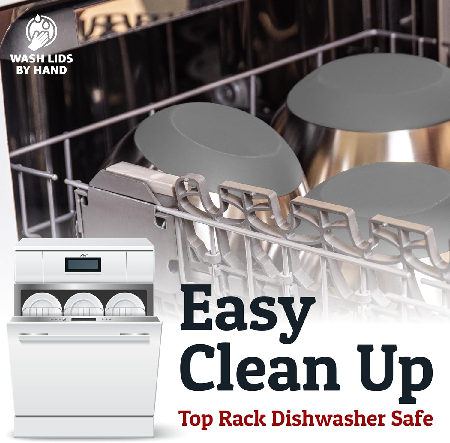 - Top Rack Dishwasher Safe: We value your time in and out of the kitchen. With top-rack dishwasher-safe mixing bowl stainless steel set and easily hand-washable lids, cleaning up is as seamless as your cooking.