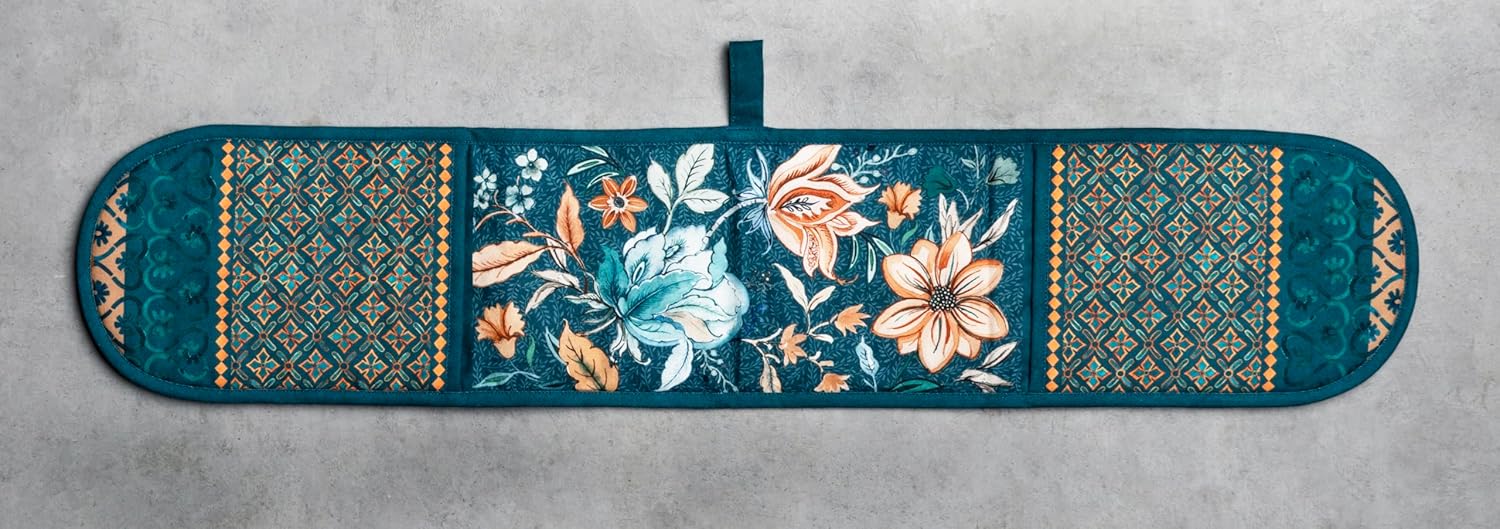 - Package includes: Includes 1 double oven mitt sized 7"x35". Perfect for handling hot cookware safely while adding a touch of European elegance to your kitchen. Designed in Europe and made in India with care