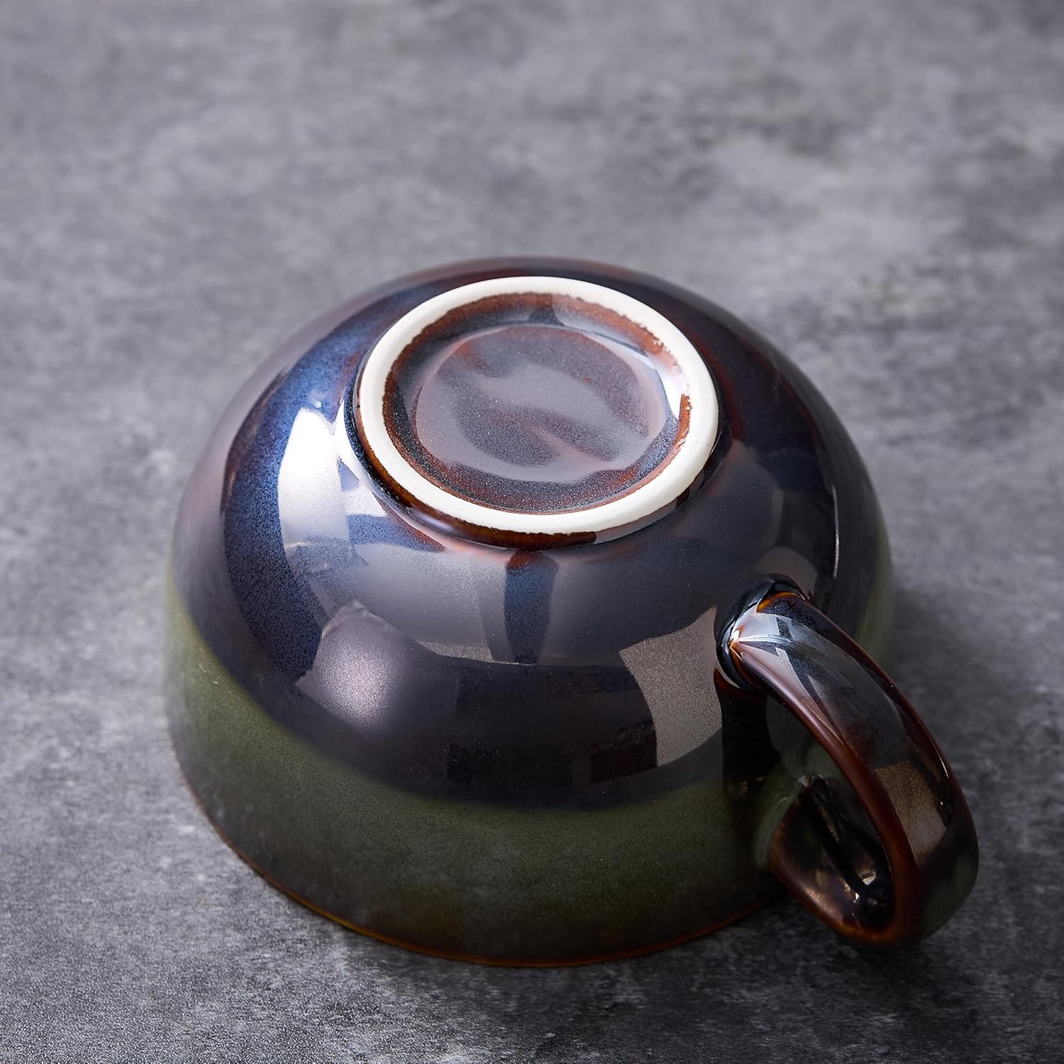 Set of 6 Vintage Design 12 oz Professional Barista Ceramic Latte Art Cappuccino Cups Set (Sea Grey * 6)