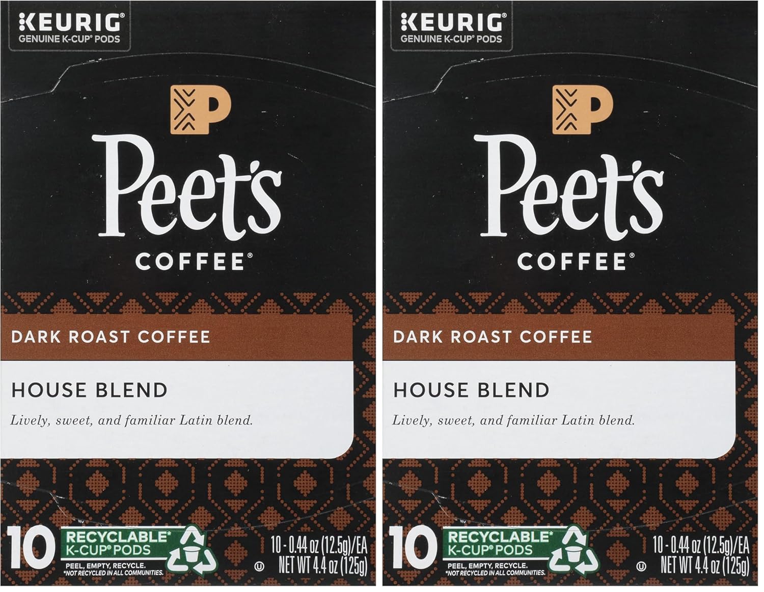 Peet's Coffee House K Cup Coffee Pods for Keurig Brewers, Dark Roast, 10 Pods, 4.4 oz (Pack of 2)