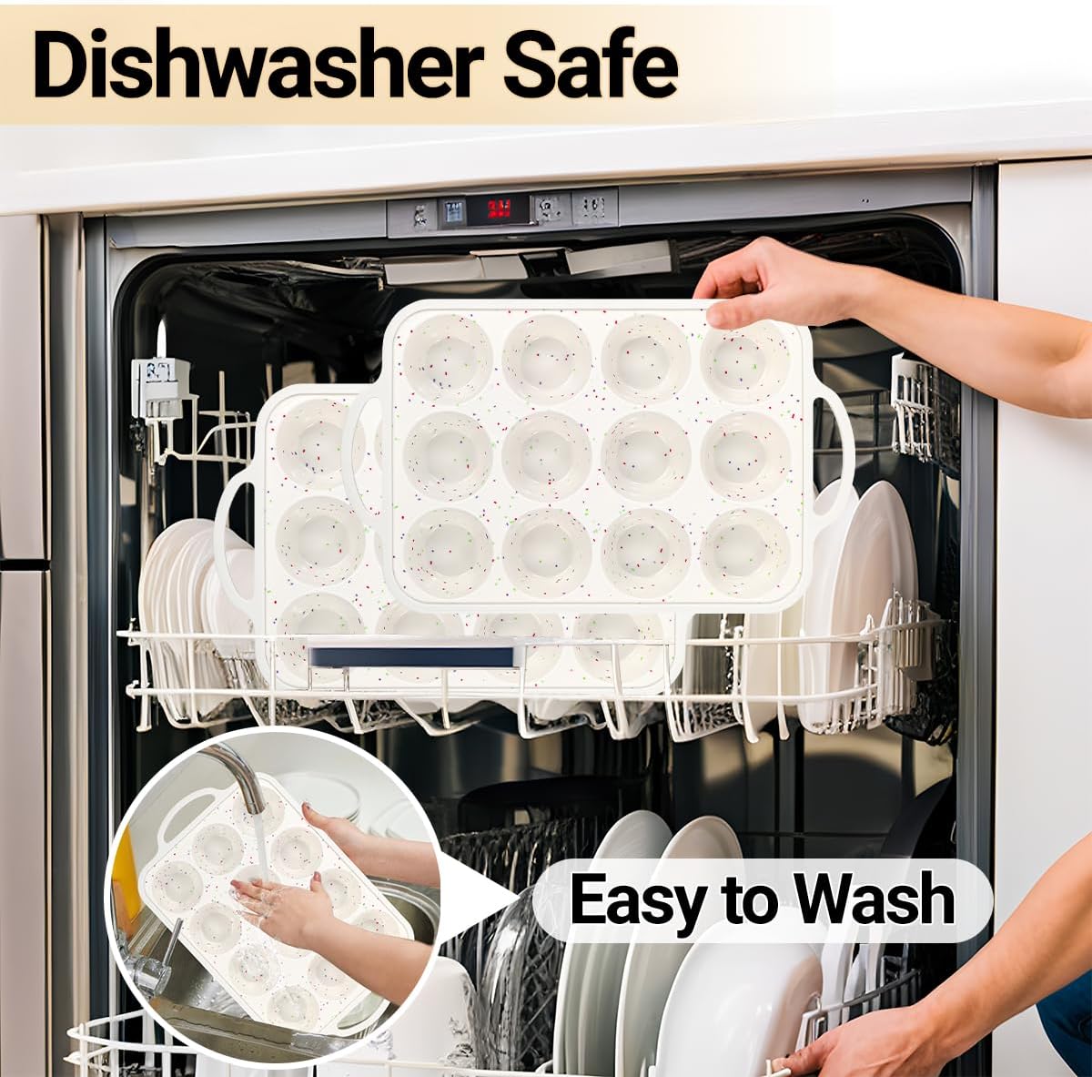 - Easy to Clean: The non stick silicone muffin tray just need a simple press from the bottom releases muffins pop out,without ripping them apart! The cleaning is so easy. Enable you to bake with ease
