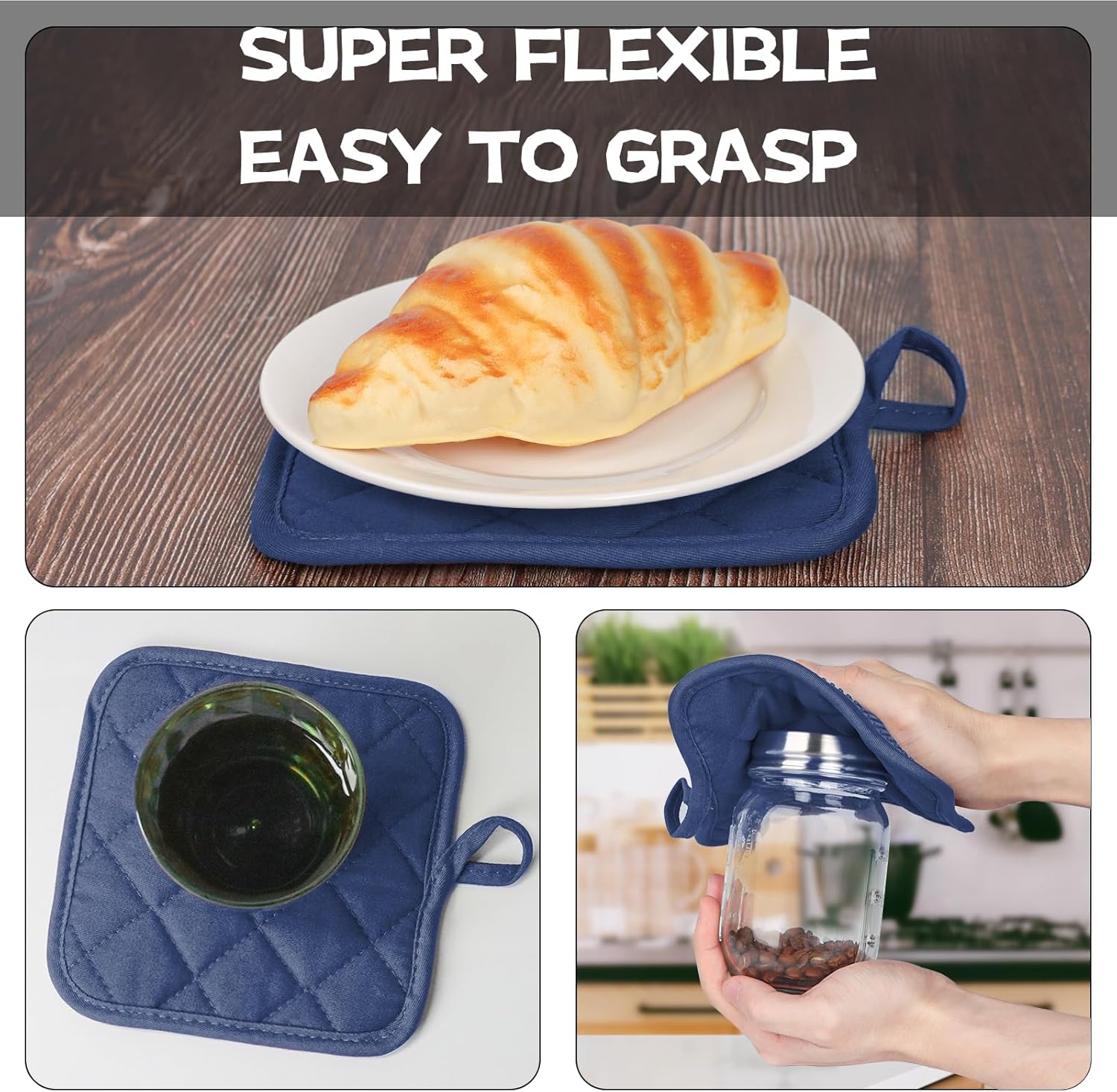 - 4 PIECE GREAT VALUE HOUSEHOLD ESSENTIALS PACK: Super value for 4pcs short oven mitts and pot holders, including 2 oven mitts(6.8 x 5.3in) and 2 pot holders (6.6 x 6.6in), perfect for daily use and coordinate well with your house and kitchen.