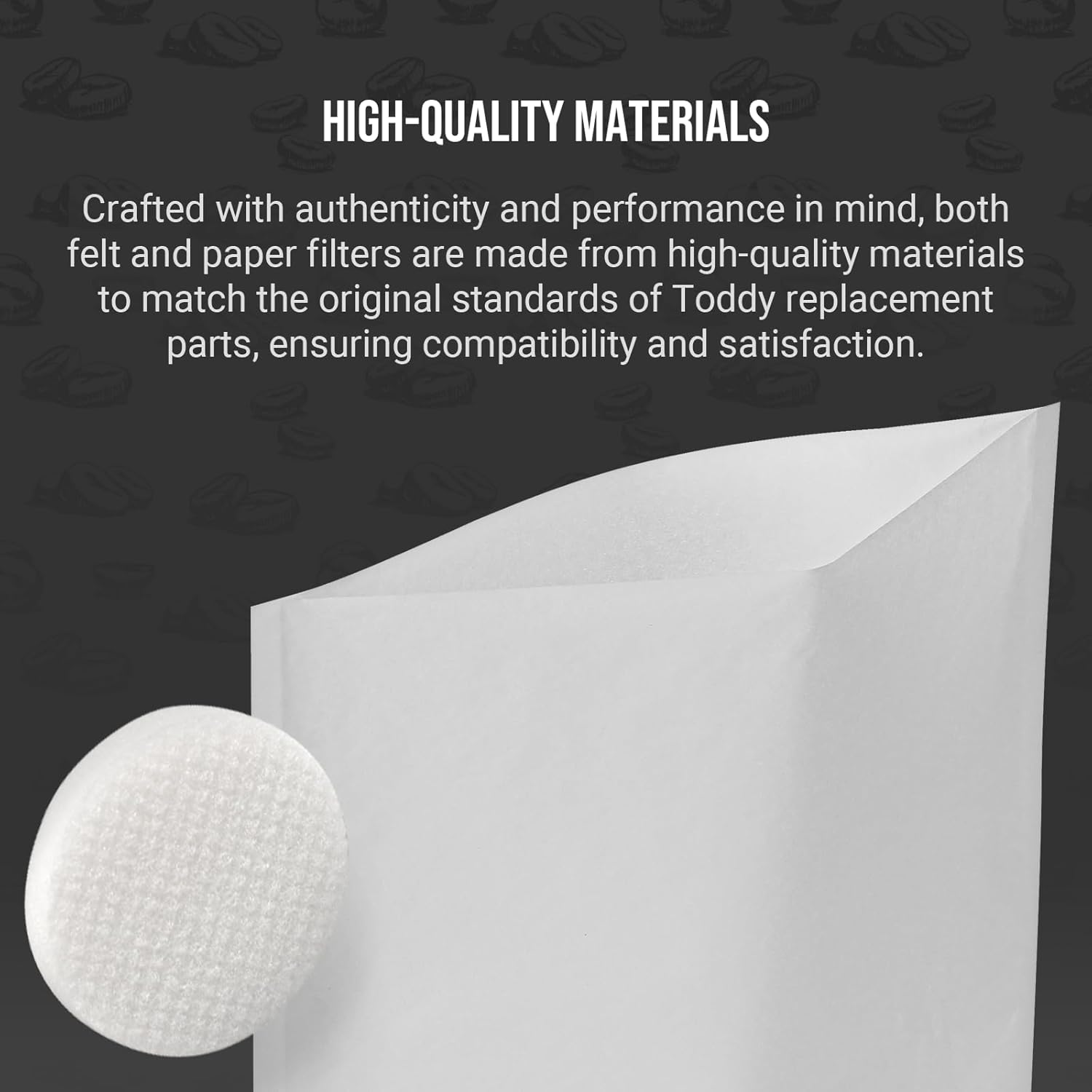 - High-Quality Materials: Crafted with authenticity and performance in mind, both felt and paper filters are made from high-quality materials to match the original standards of Toddy replacement parts, ensuring compatibility and satisfaction.