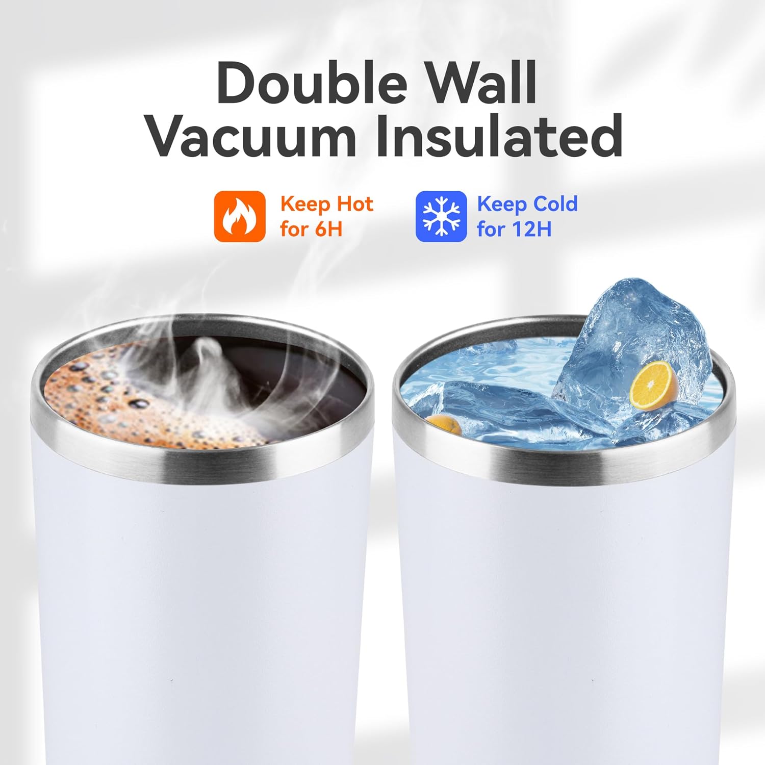 - DOUBLE WALL VACUUM INSULATION:Enjoy Beverage Cold or Hot. Under normal temperature, it can keep a tumbler of ice for 12h until the ice totally melt, or hot coffee warm for 6h