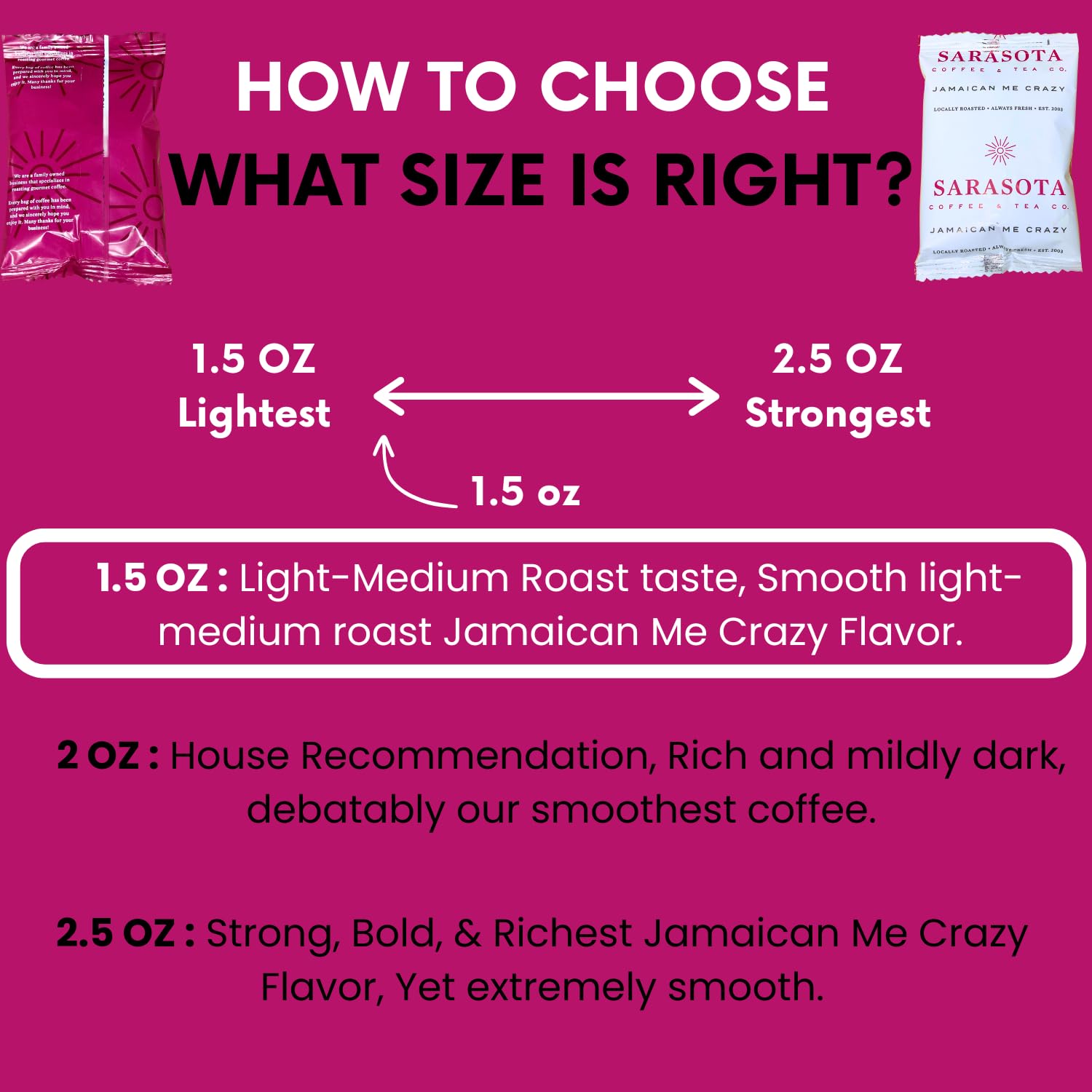 Sarasota Coffee Ground Packets | Gourmet Flavored Medium Roast Bulk Coffee Packs | Jamaican Me Crazy | Low Acid Mold Free Singles Individual Pouches for 12 Cup | 1.5 Ounce Bags, 42 Count