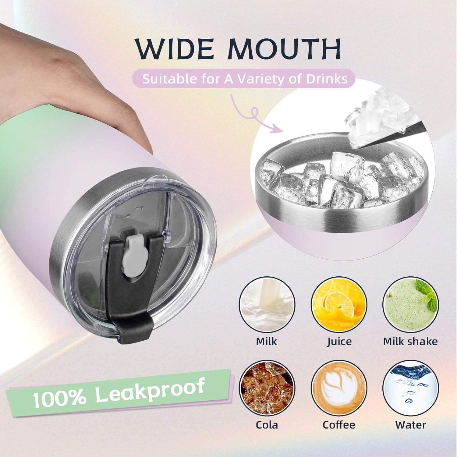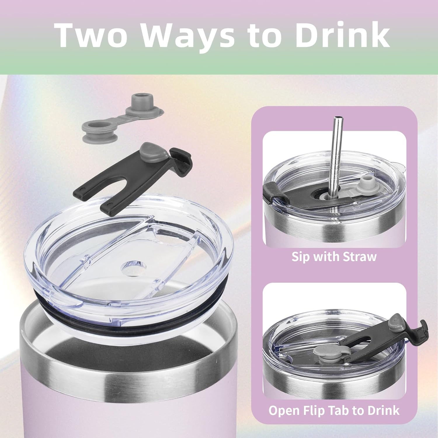 - âšăSpill-proof Lidă: The lid of the thermos cup is made of unique sealing technology, basically no leakage if you move it at any angle; If the cup is filled with hot water, please open one of the drinking holes first, so that the lid will be easier.
