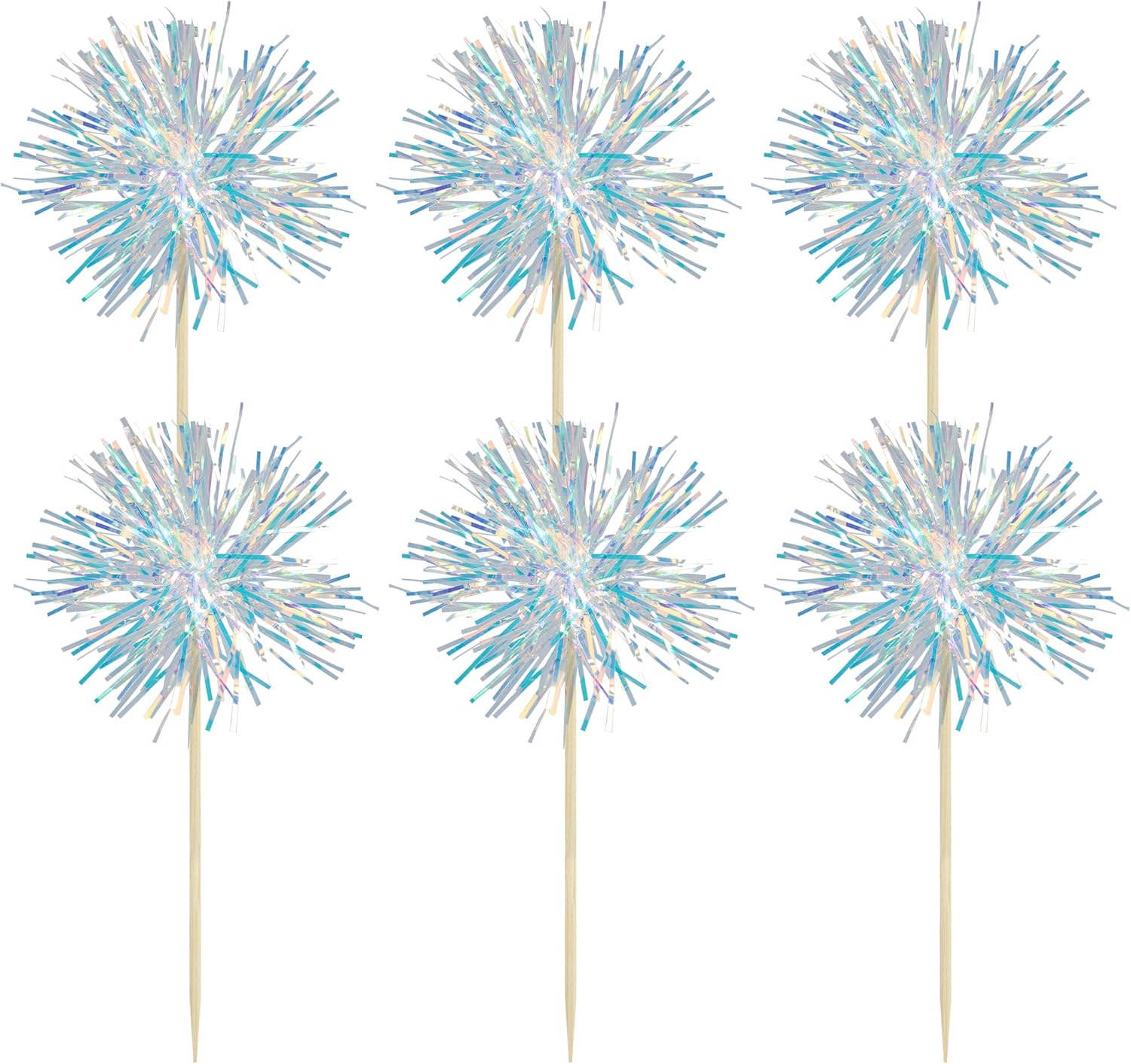 Gyufise 30Pcs Foil Firework Cupcake Toppers Sparkle Tinsel Cake Toppers Tinsel Drink Cake Decoration Cocktail Picks for Birthday Wedding Graduation Party Supplies Laser White