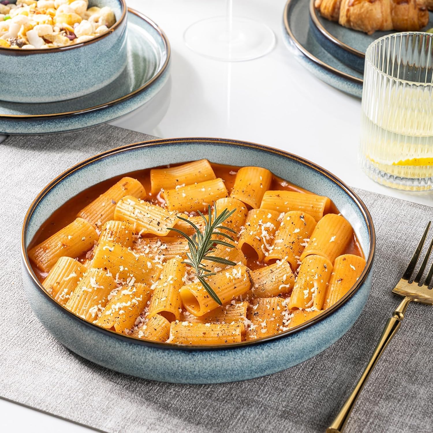- 【Convenient and Space-saving】: Made from durable stoneware, these pasta bowls are stackable and dishwasher, microwave, and freezer safe. Their humanized design makes them easy to wash with dish soap and hot water, and they take up minimal space in your cabinet.