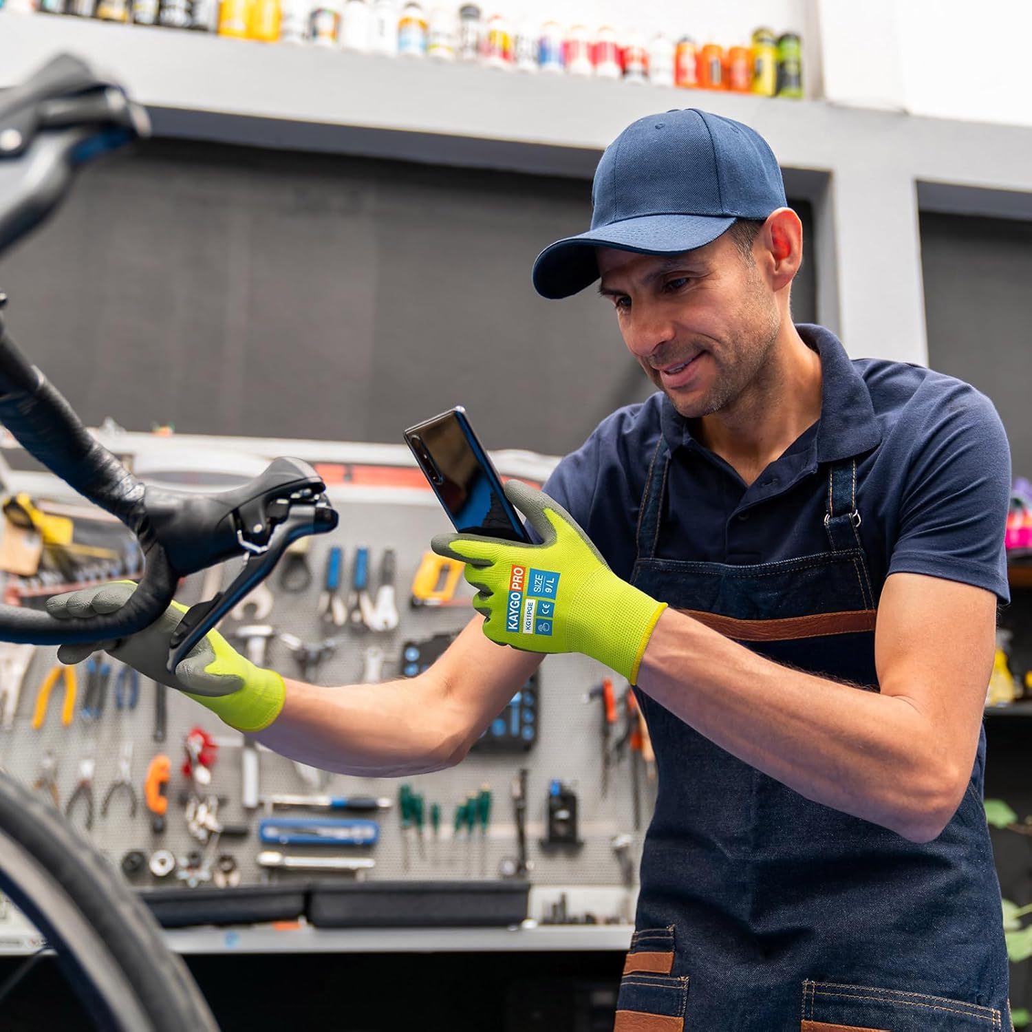 KAYGO Safety Work Gloves PU Coated for Men and Women, KG11P 12 Pairs, Seamless Knit Glove with Two Fingers Touchscreen,Ideal for General Duty Work (Green,S)