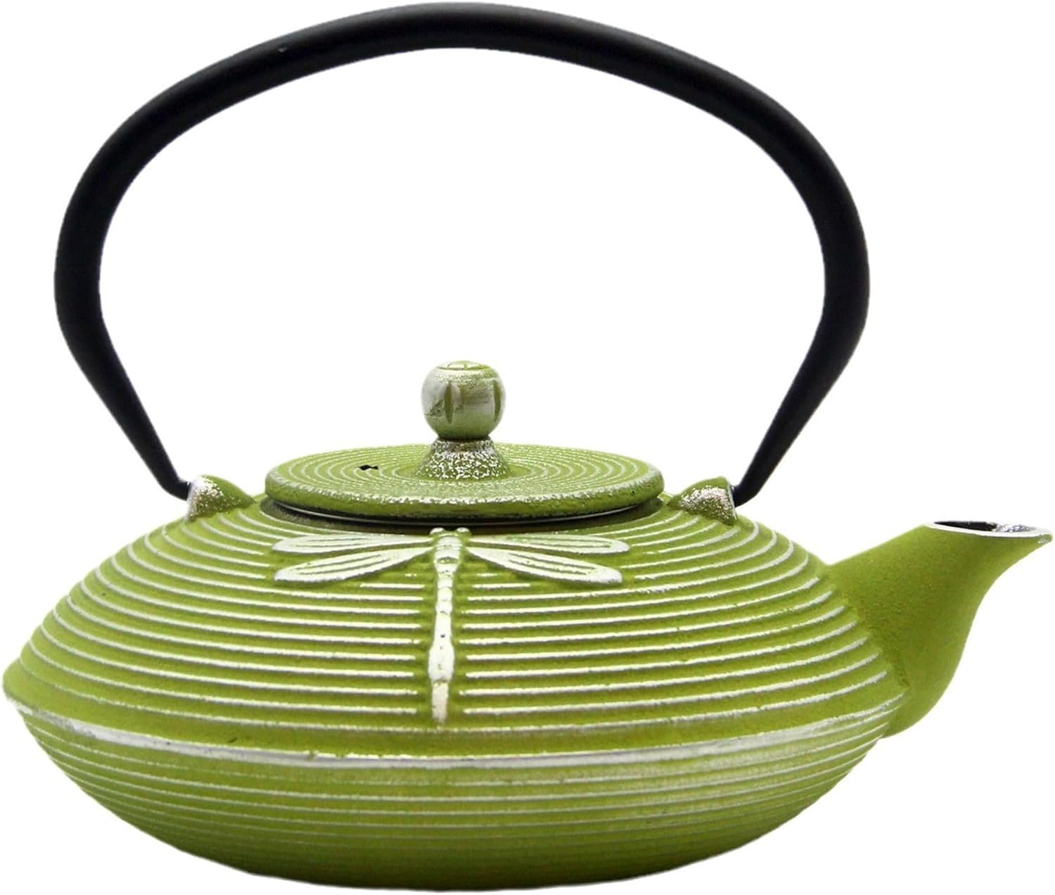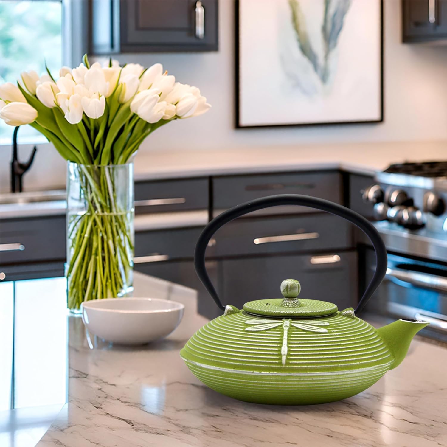 Cast Iron Teapot,SECHUDO Tea Kettle Coated with Enameled Interior for Loose Tea,Cast Iron Teapot with Stainless Steel Infuser for Stovetop Safe (27.1oz Flat Dragonfly Pattern)