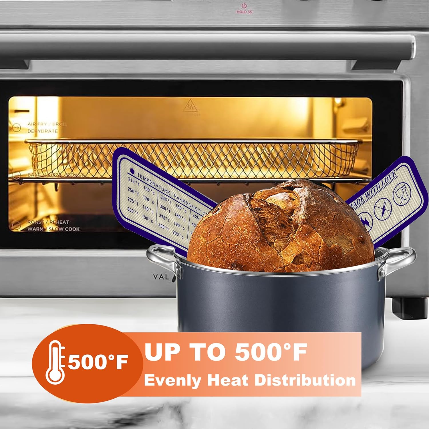 - Bread Slings Fits 5–7 qt Dutch Ovens: This 2-pack set includes both an 8-inch and a 10-inch round silicone baking mat, fits most Dutch ovens from 5 to 7 quarts. No more struggling to find the right sourdough mat—this set covers all your baking needs. Made from 0.7 mm-thick food-grade silicone, it’s flexible, non-stick, and won’t crack with repeated use. (Tip: Fits may vary, please measure your Dutch oven before buying.)