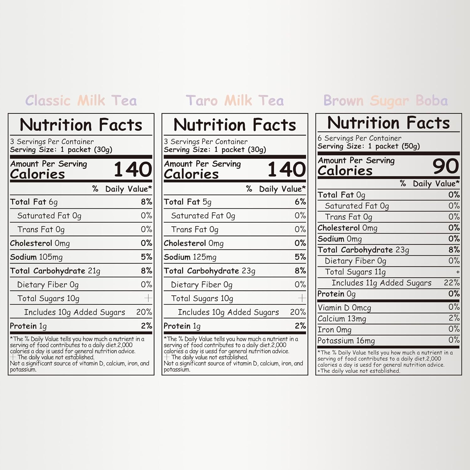 - 🧋 Combo Pack (Classic & Taro Milk Tea) - Mix and match Classic and Taro Milk Tea flavors with premium authentic brown sugar boba balls from Taiwan to create your own delicious hot & iced Boba drinks! Ready in under a minute! This can be gifted as an ideal boba tea gift set to boba lovers.
