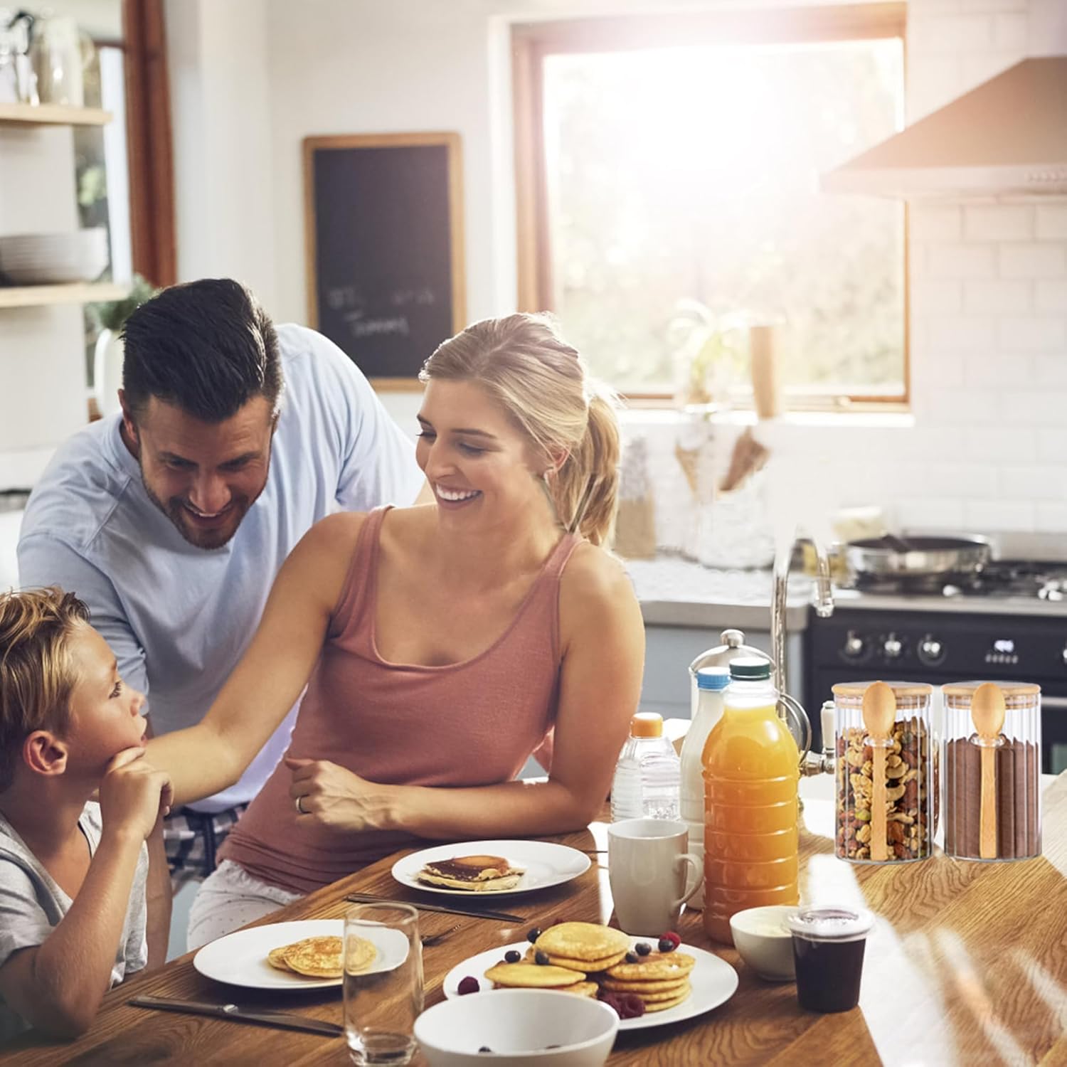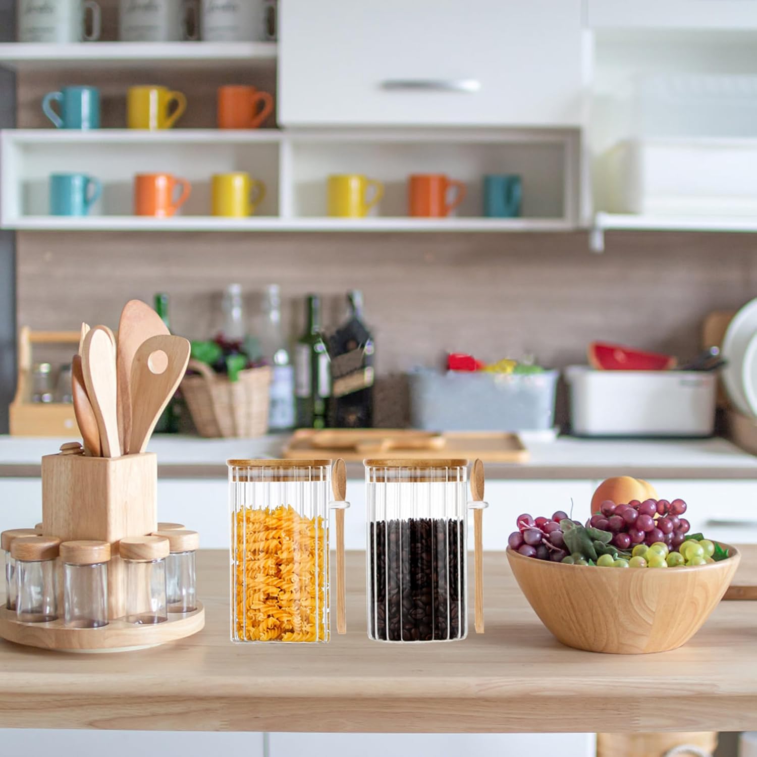 - Glass Jars with Airtight Lids & Upgrade Spoons: A food-grade silicone loop around the bamboo cover lid ensures a nice seal to prevent food from moist and dust in air. Nicely made strong spoons with longer spoon handle & deeper spoon head than other normal spoons are designed for you to better dig what’s inside the jar.