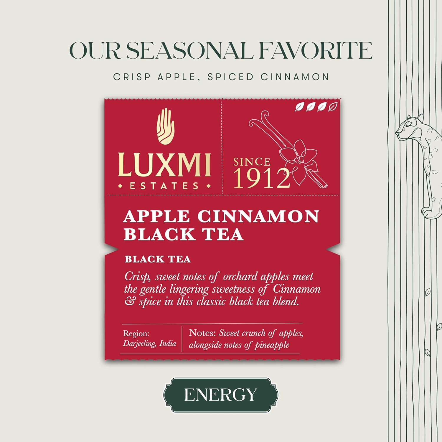 - Crafted with Care: At Luxmi Estates, we take pride in our commitment to quality and craftsmanship. Each batch of Apple Cinnamon Black Tea is meticulously blended and packaged with care, ensuring that you receive only the finest tea experience every time