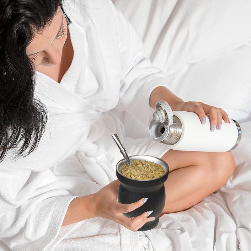 - BOMBILLA ACCESSORY: Each yerba mate cup comes with a multifunctional lid, two sturdy, high-quality stainless steel bombilla straws, and two cleaning brushes to assist with cleaning and maintenance