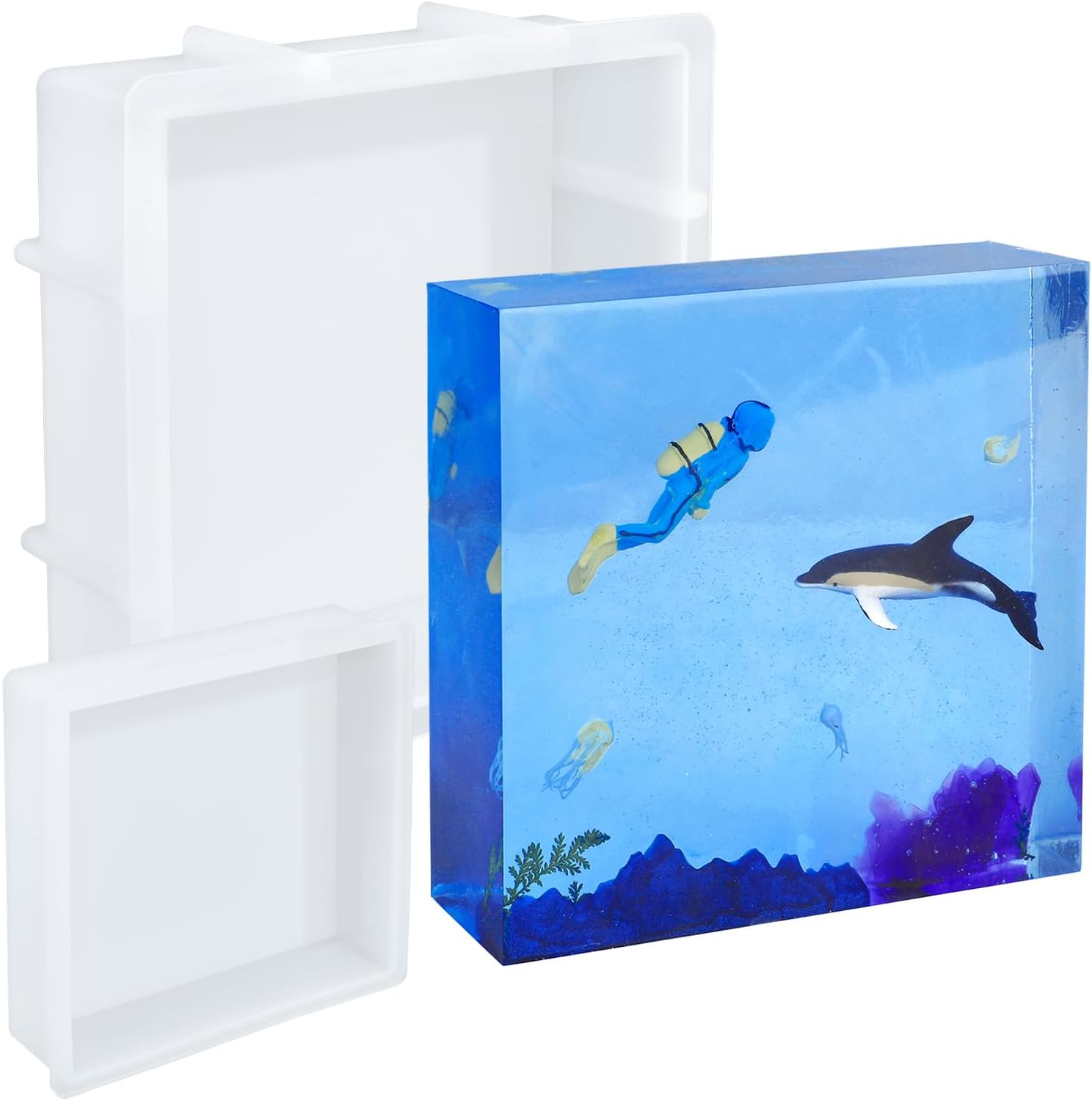 - 【Multiple Sizes】Large Square Resin Molds contains 2 PCS molds, including 6.85 "L x 6.85 "W x 2 "H (38.8oz), 3.8 "L x 3.8 "W x 0.9 "H ( 5.2oz), Multiple sizes are available to meet your creative needs!