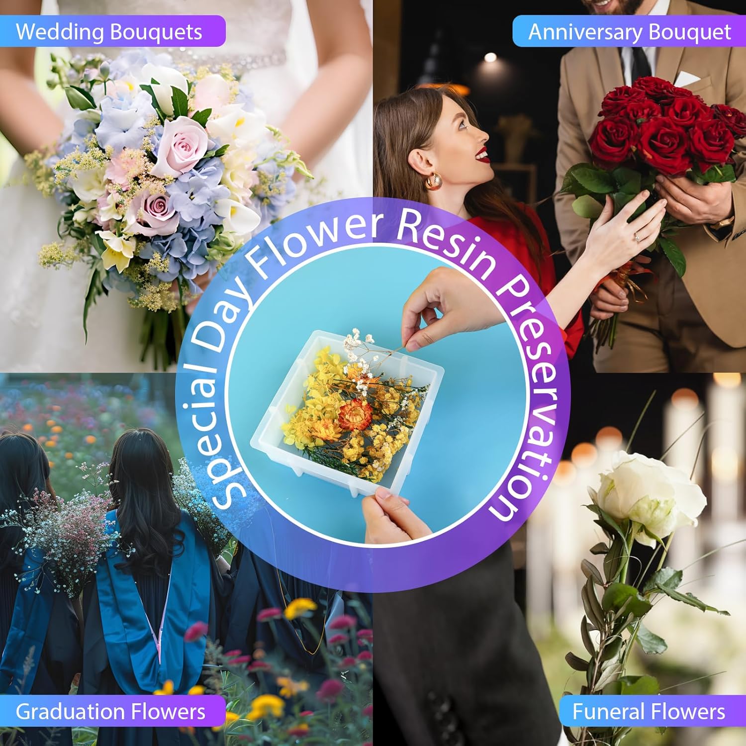 KISREL Large Square Resin Molds, Square Silicone Mold for Epoxy Resin, Large Mold for Flower Preservation, Deep Pour Molds for Furniture Decoration, DIY Wedding Bouquets, Valentine's Day Gifts