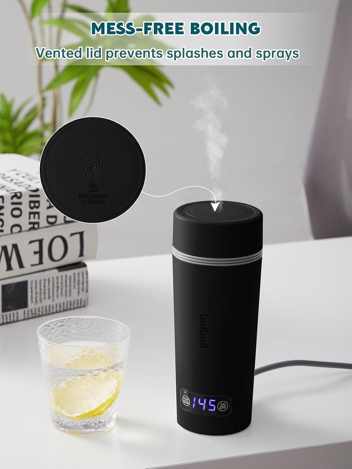 - Mess-Free Boiling: Vented lid prevents accidental spills during operation